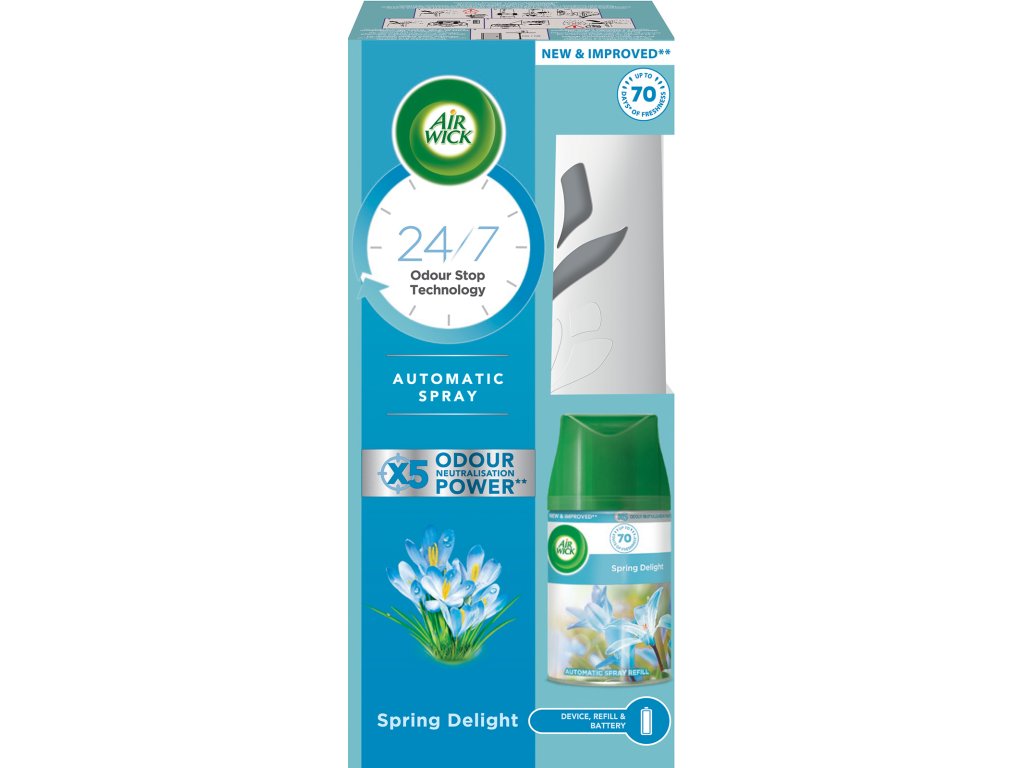 AIR WICK automatický osvěžovač vzduchu bílý+ náplň Spring Delight 250ml Automatický osvěžovač vzduchu s jemnou vůní květin a jarního vánku