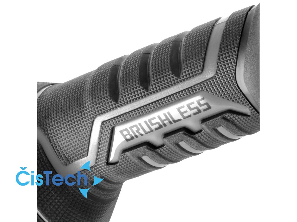 Bezuhlíkový motor. Vyšší výkon – méně tření, méně ztrát → více energie jde přímo do pohybu, nářadí pracuje rychleji a efektivněji.