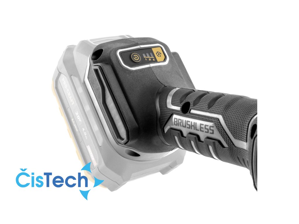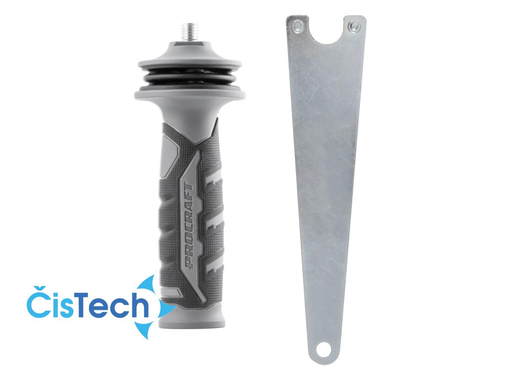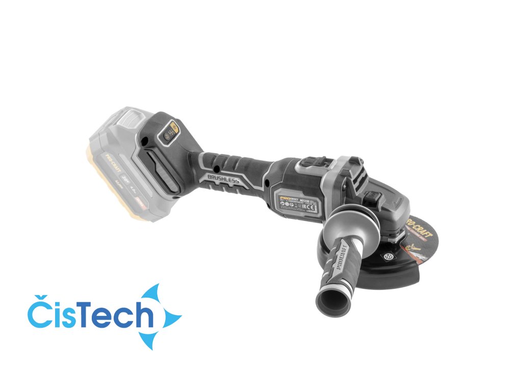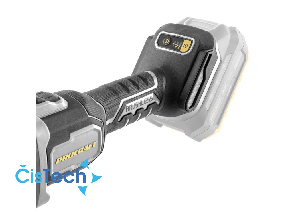 Aku bruska úhlová Procraft AG125B + 10x řezný kotouč, 4x lamelový kotouč, 5x brusný kotouč, rychloupínací matice