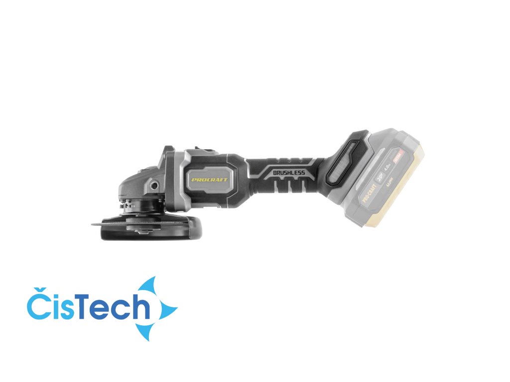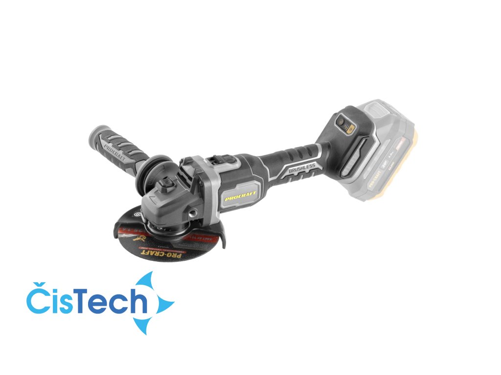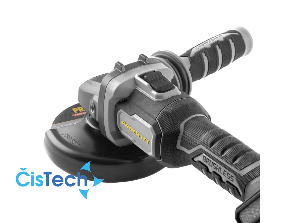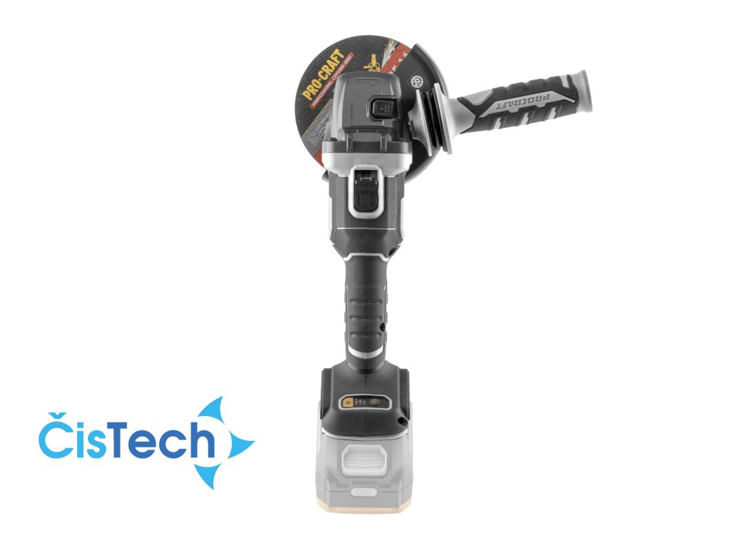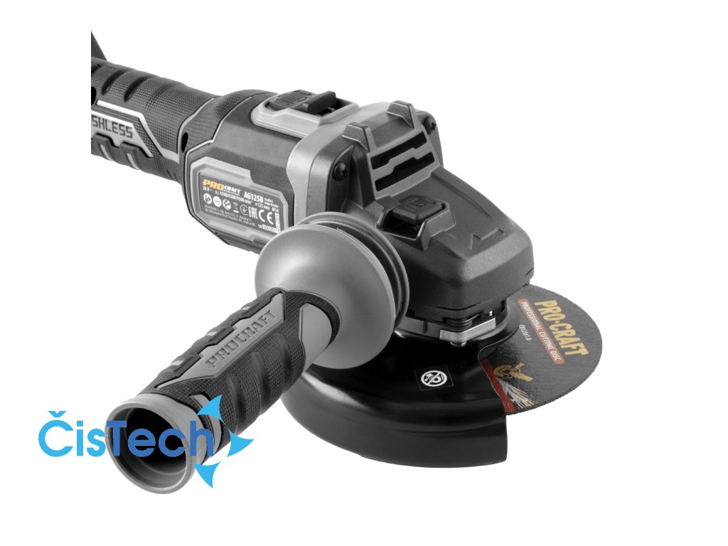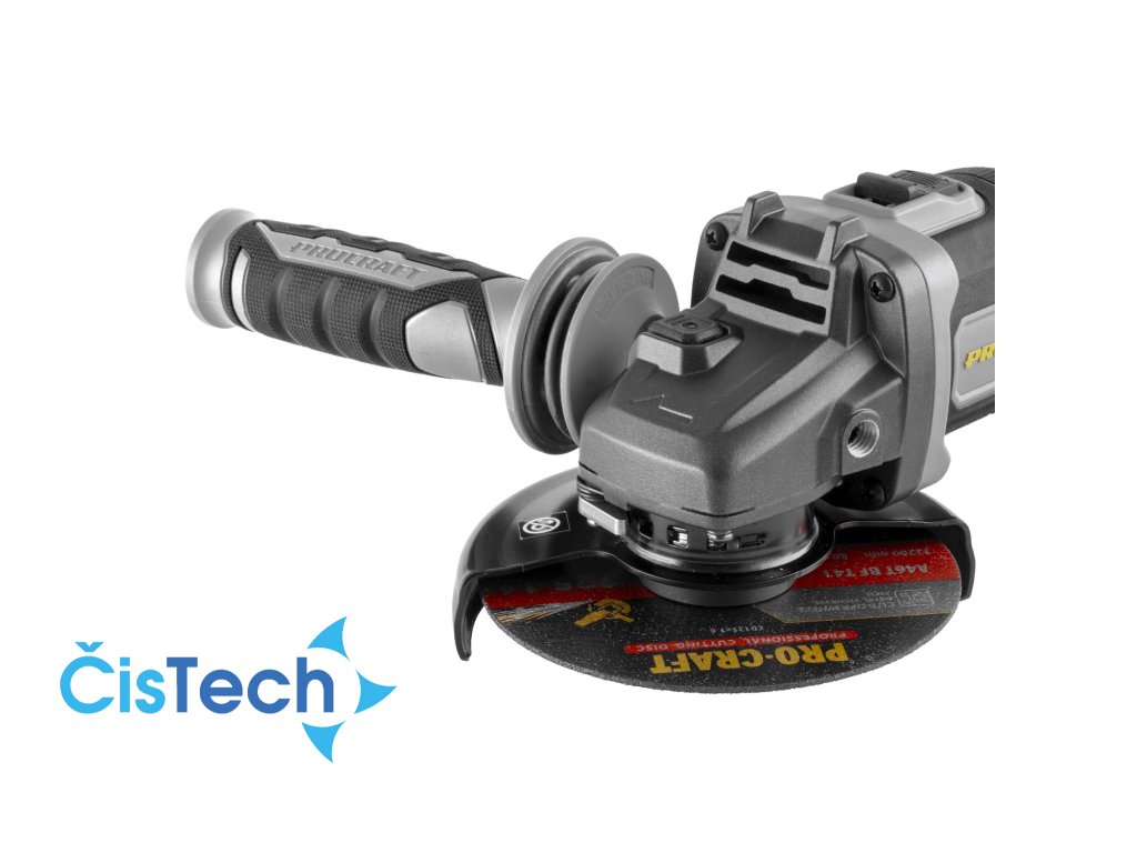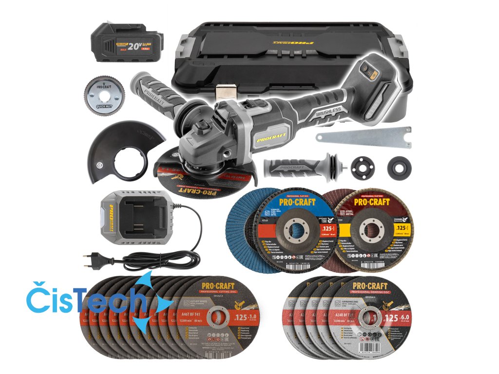 Aku bruska úhlová Procraft AG125B + 10x řezný, 4x lamelový, 5x brusný kotouče, rychloupínací matice