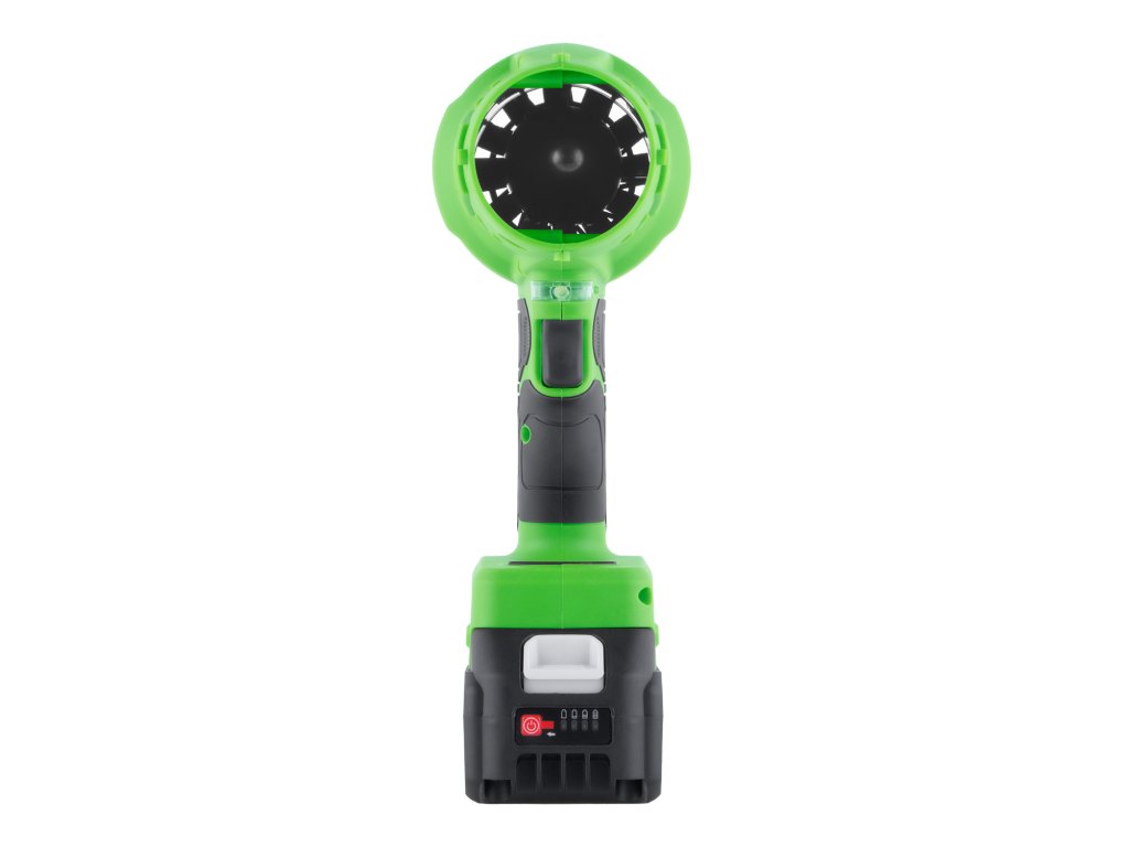 Variabilní rychlost proudění vzduchu: Možnost nastavení otáček v rozsahu 20000 min⁻¹ umožňuje přizpůsobit sílu foukání konkrétnímu úkolu, od jemného odfoukání prachu po intenzivnější čištění.