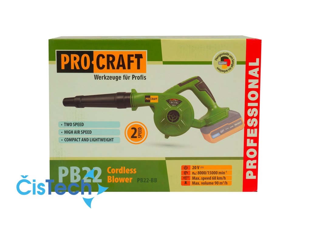 Aku fukar Procraft PB22bb je díky své lehkosti, mobilitě a variabilnímu výkonu ideálním partnerem pro každodenní rychlý úklid zahrady, terasy či dílny. Představuje tak praktické a efektivní řešení pro všechny, kteří hledají spolehlivého pomocníka bez omezení kabelem, připraveného k okamžité akci.