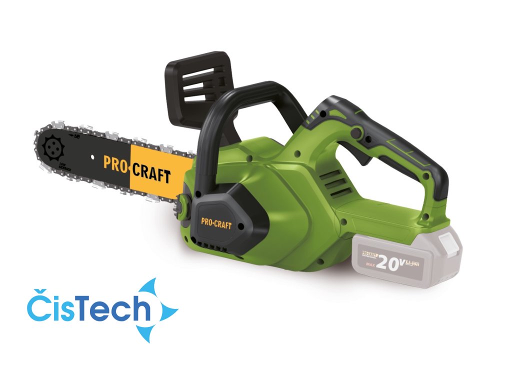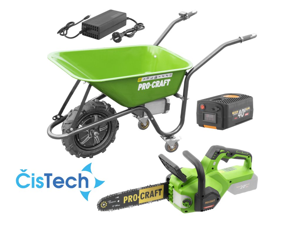Doplňuje jej aku řetězová pila Procraft PKA38 s bezuhlíkovým motorem, kompaktními rozměry a nízkou hmotností, vhodná pro rychlé prořezávání stromů a keřů. Pila je dodávána s vodicí lištou, řetězem, krytem a montážním klíčem (bez baterie a nabíječky – využívá stejný akumulátor jako kolečko).