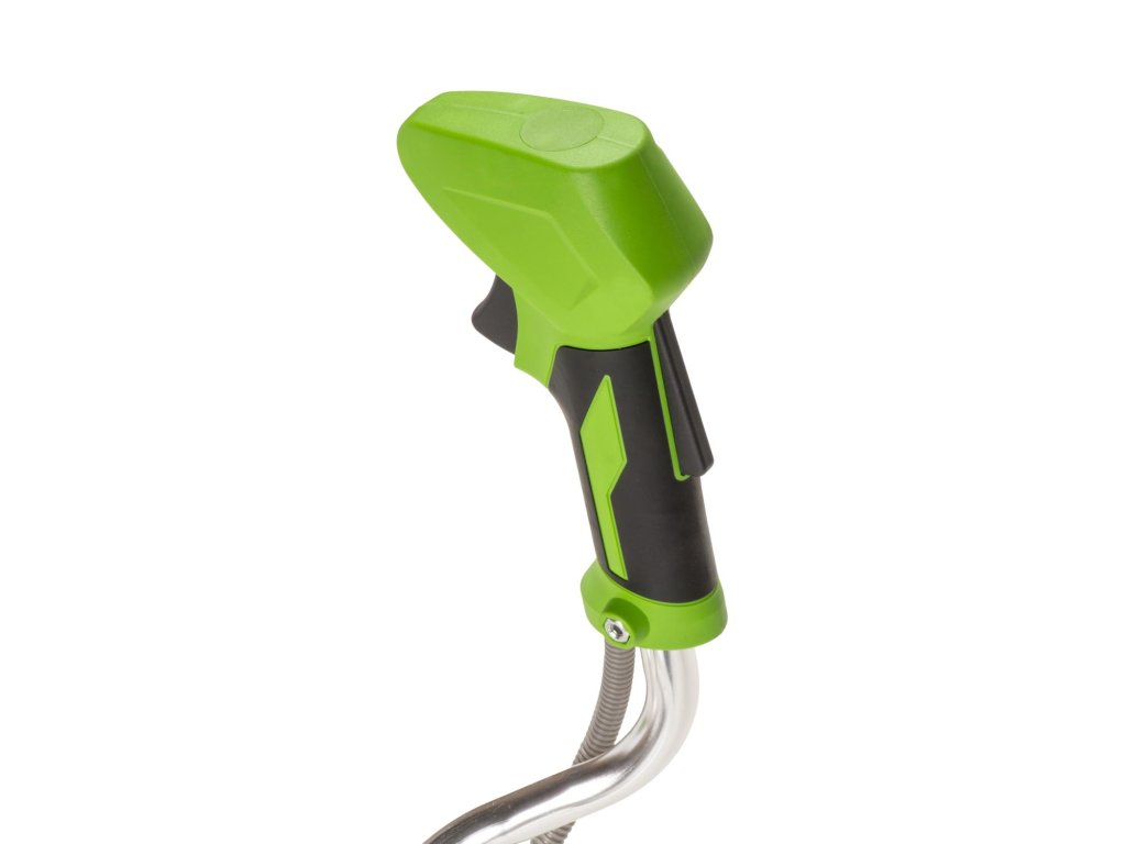 Obouruční rukojeť (řidítka): Ergonomicky tvarovaná obouruční rukojeť poskytuje maximální kontrolu a stabilitu během sekání. Umožňuje přirozenější pohyb, snižuje únavu rukou a zad a zvyšuje přesnost při práci s nástrojem.