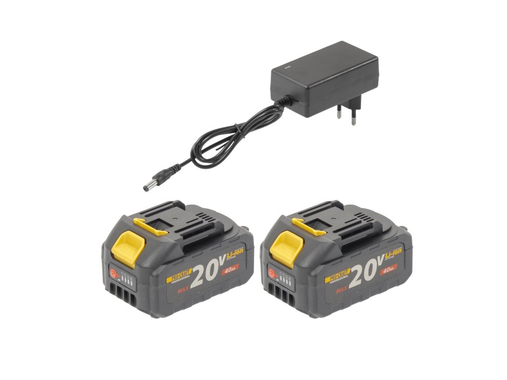 Dva výkonné akumulátory: Součástí balení jsou dvě 20V 4Ah Li-ion baterie, které zajistí dostatečnou energii pro delší práci. Až 40 minut práce na jedno nabití. Doba nabíjení: Pouhých 2,0-2,5 hodiny.