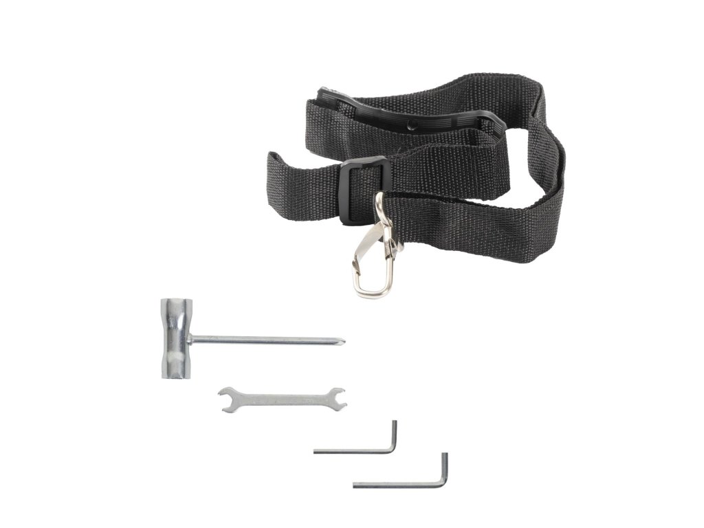 Kompletní příslušenství: Křovinořez je dodáván s nabíječkou, popruhem pro pohodlnou práci, strunovou hlavou pro běžné sečení a kovovým kotoučem pro náročnější porosty, a také montážním klíčem. Vše je prakticky zabaleno v kartonu.
