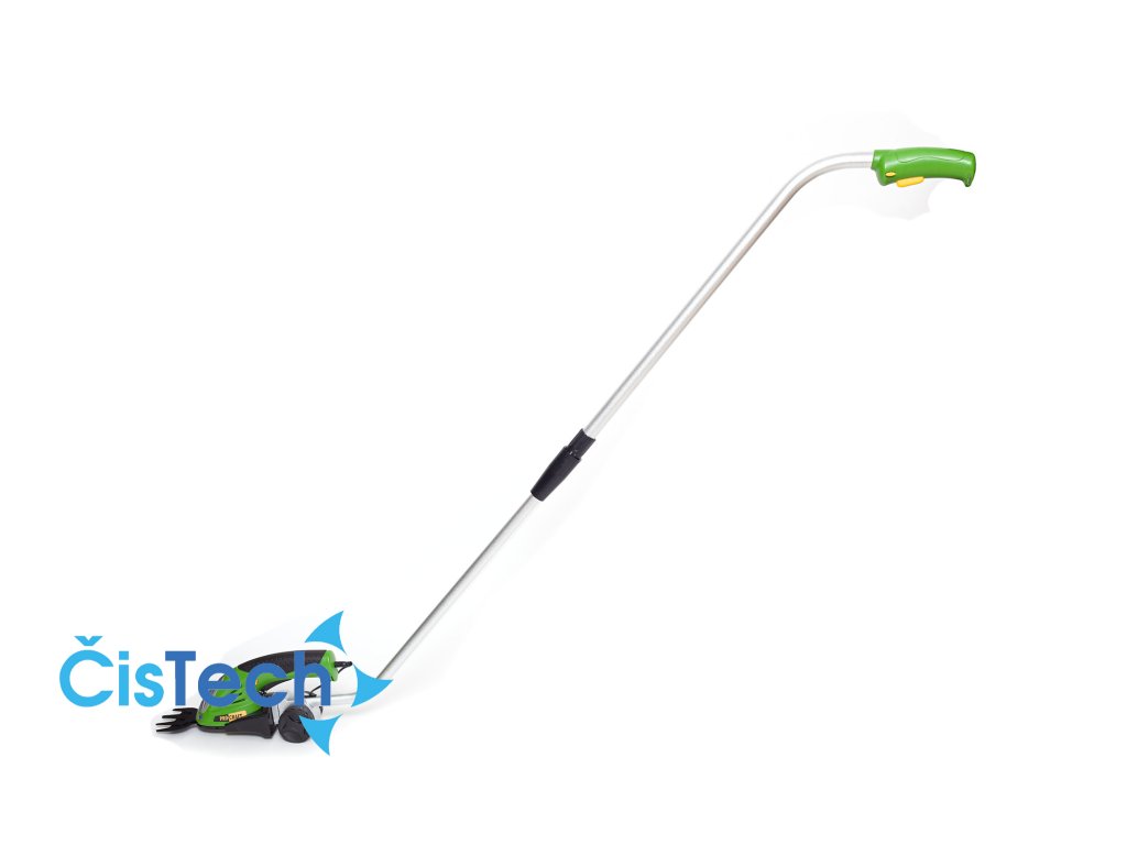 Teleskopická rukojeť s kolečky: pohodlné stříhání bez ohýbání zad.