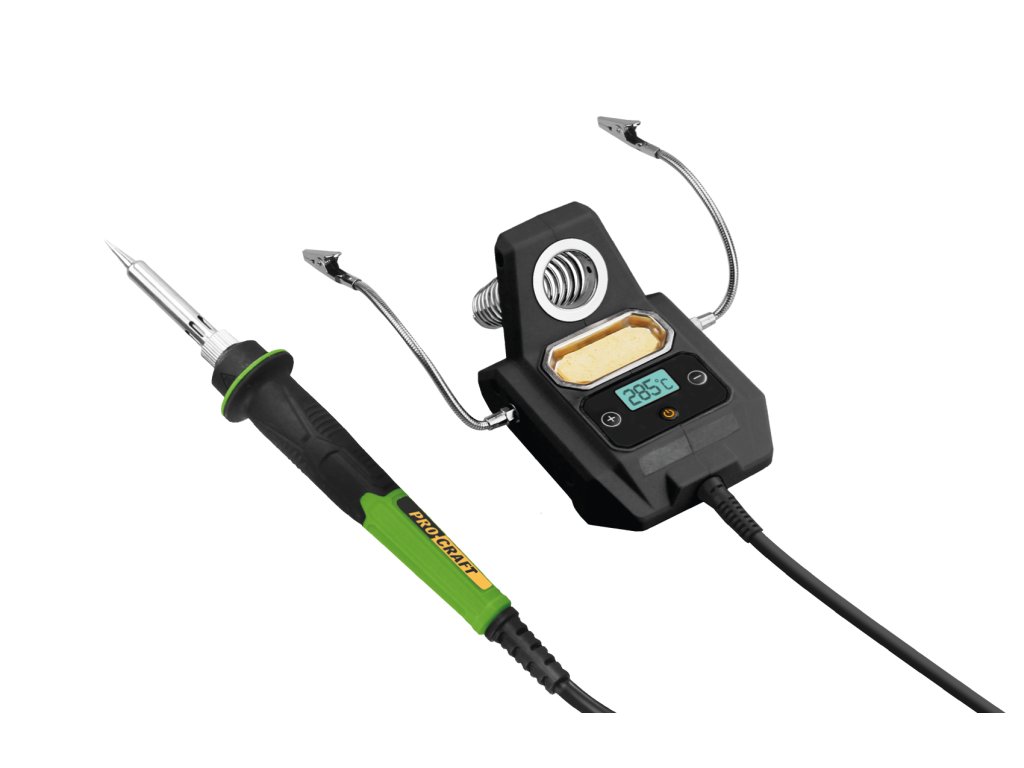 Aku pájecí stanice Procraft CS60-BB představuje výkonné a mobilní řešení pro přesné pájení bez omezení napájecím kabelem. Díky akumulátorovému napájení 20 V a vysokému výkonu 60 W je vhodná nejen pro hobby použití, ale i pro náročnější servisní a montážní práce v dílně i v terénu. Stanice umožňuje regulaci teploty v rozsahu 100–500 °C, přičemž aktuální hodnota je přehledně zobrazena na digitálním displeji. Páječka je vybavena rychlovýměnnými hroty, ergonomickou rukojetí s měkčeným úchopem a praktickým ocelovým pružinovým držákem.