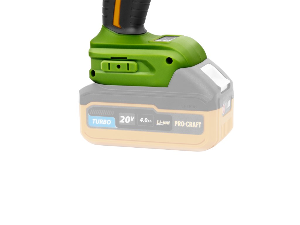Utahovák je kompatibilní s univerzální 20V baterií Procraft, kterou lze využít i pro další nářadí této řady.