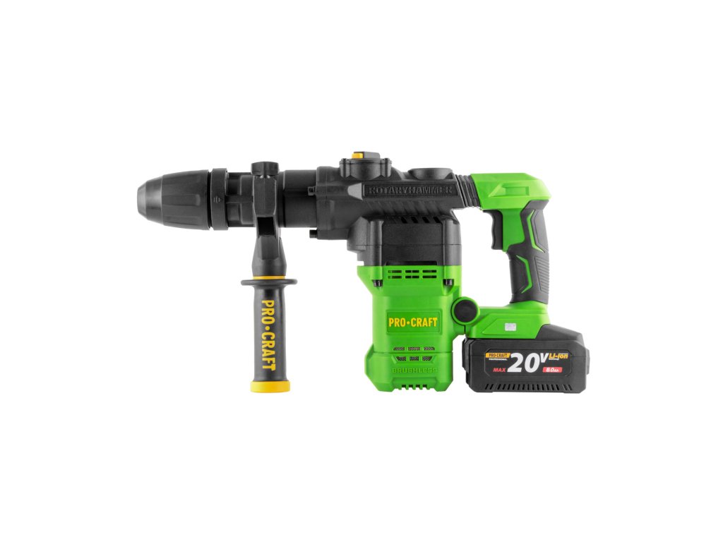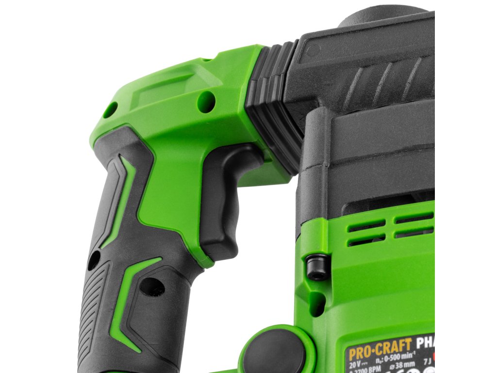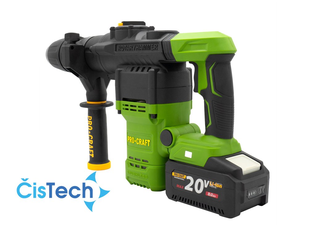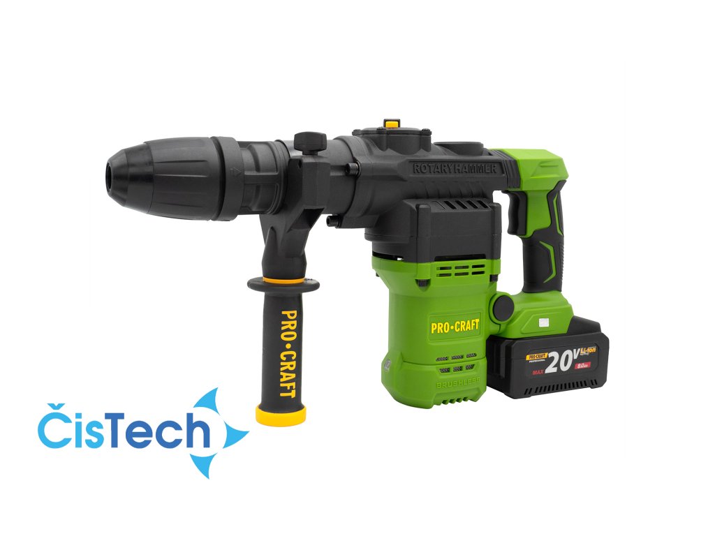 Aku vrtací kladivo Procraft PHA50-1b-c s bezuhlíkovým motorem. Režimy vrtání s příklepem a sekání, síla úderu 7 J, otáčky 0–500/min⁻¹ , příklepy 0–2700/min⁻¹ . Ideální pro stavební a renovace práce. Součástí balení je baterie, nabíječka a kufr.