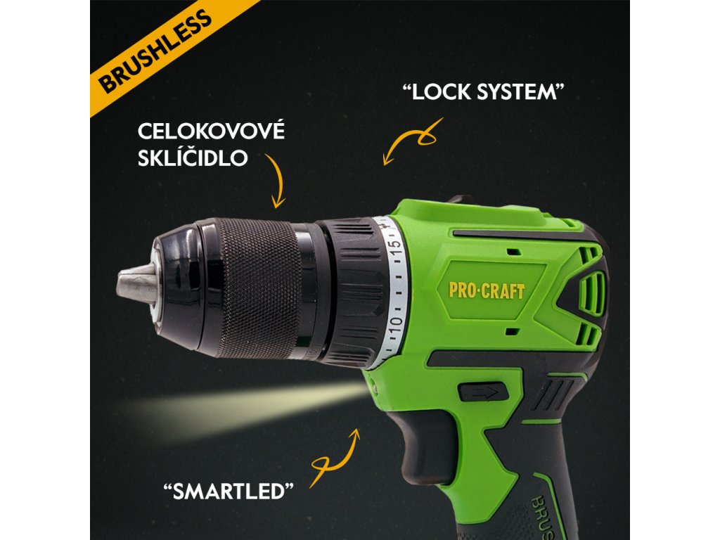 Aku vrtací šroubovák Procraft PA18LiN je praktickým pomocníkem všude tam, kde nechcete být při práci omezováni napájecím kabelem. Stroj je ideální pro vrtání, šroubování šroubů a vrutů, šroubování matic pomocí bitů a 1/4“ nástrčných hlavic. Díky použití moderního a výkonného bezkartáčového (brushless) motoru nabízí vrtačka/šroubovák točivý moment až 50 Nm, který lze regulovat ve 20+1 stupních. Výrazně slyšitelné přeskakování při dosažení nastaveného utahovacího momentu. Mechanická dvourychlostní převodovka umožňuje zvolit správný rozsah otáček v závislosti na prováděné práci: 1 - šroubování; 2 - vrtání. Rychloupínací sklíčidlo umožňuje použití pracovních nástrojů s průměrem 0,8 - 13 mm. Pro usnadnění práce v tmavých místnostech je přístroj vybaven LED osvětlením. Vrtačka/šroubovák PA18LiN se dodává v odolném kufříku spolu s nabíječkou a Li-Ion akumulátorem s kapacitou 2 Ah. Kromě toho je součástí dodávky ohebná hřídel pro práci v těžko přístupných místech.