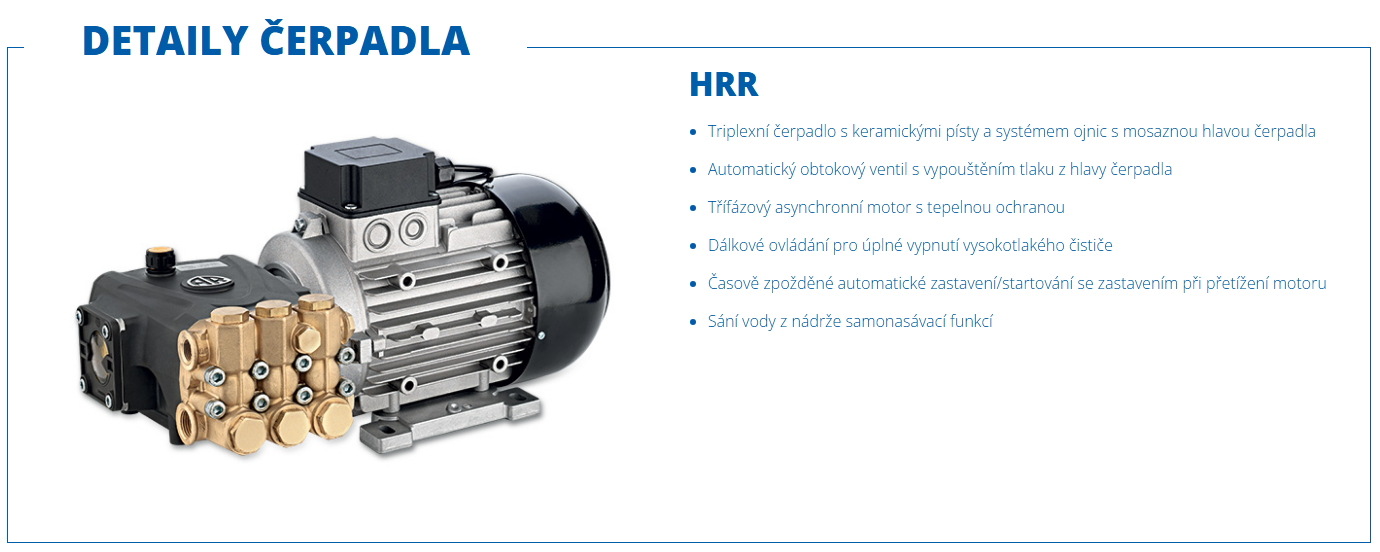 - Triplexní lineární čerpadlo (3 písty, kliková hřídel) – stabilní výkon, vyšší mechanická odolnost oproti běžným hobby řešením.