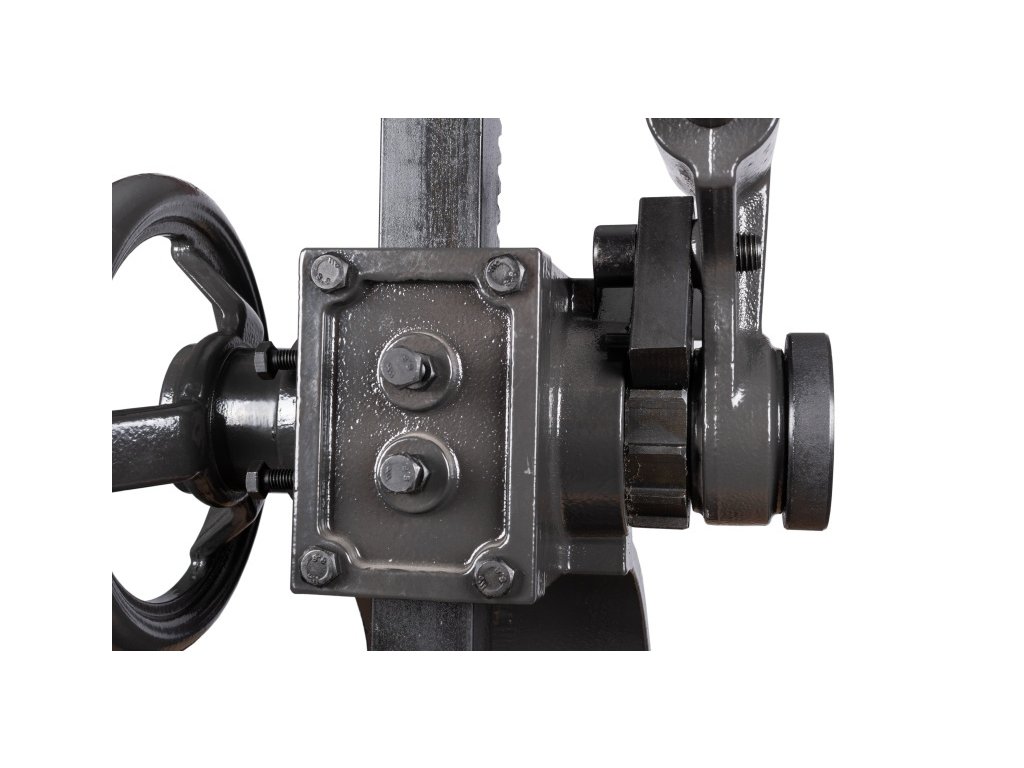 APR-3 je ruční mechanický lis s ráčnou a otočnou pracovní deskou. APR-3 je vybaven ráčnou pro snazší obsluhu kratšími pohyby pákou, která usnadní nastavení pozice beranu do ideální úvratě pro lisování. V pracovní desce jsou čtyři volitelné šířky drážek. Používá se na lisování a rozlisování ložisek, pouzder a mnoha dalších dílců. Lis je stabilní konstrukce z kvalitní šedé litiny. Najde uplatnění ve strojírenství, zámečnictví i autoservisech a všude tam, kde je velká variabilita lisovacích prací.