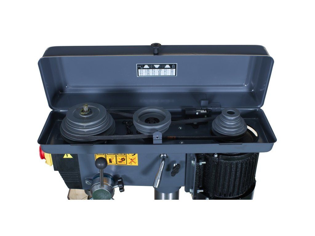 - Pomocí klínových řemenů lze zvolit až 12 rychlostí otáčení vřetene