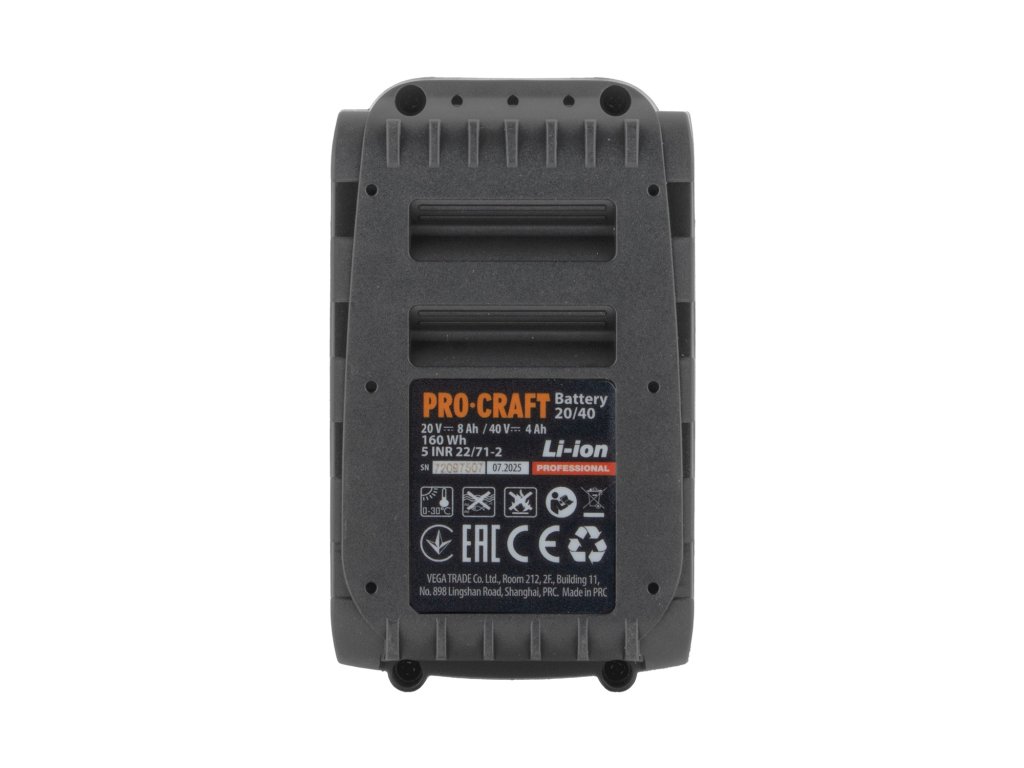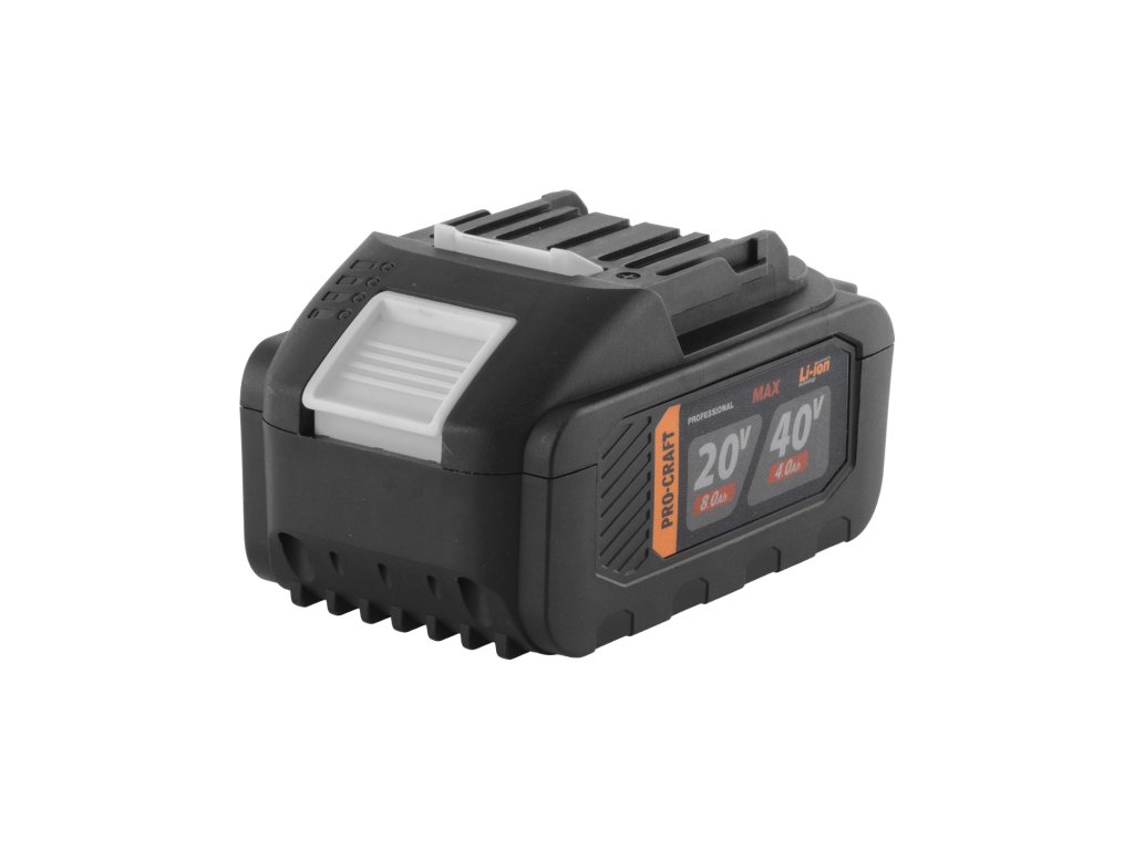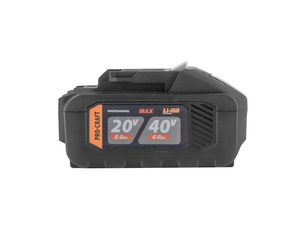Dvouplatformové napětí 20/40V: Jediná baterie kompatibilní se dvěma řadami nářadí Procraft. Automaticky se přizpůsobí stroji, do kterého ji vložíte.