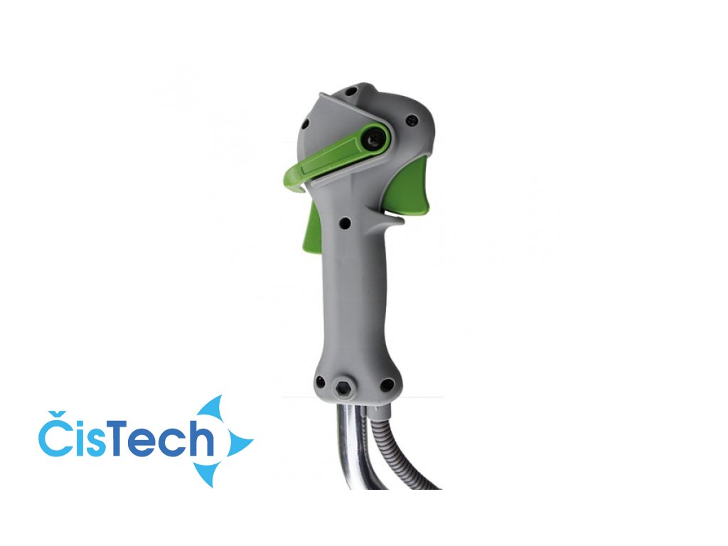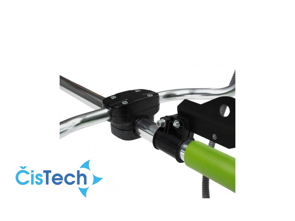 Řídítka s měkkými rukojeti - a traverzou pro uchycení popruhu s možností nastavení a vyvážení stroje podle postavy obsluhy