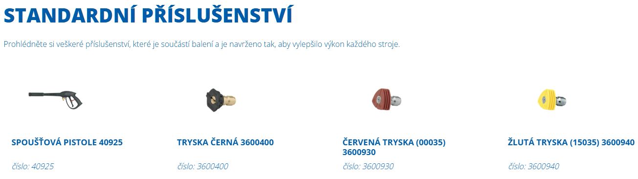 - Profesionální základní výbava včetně 8m hadice a 4 výměnných trysek
