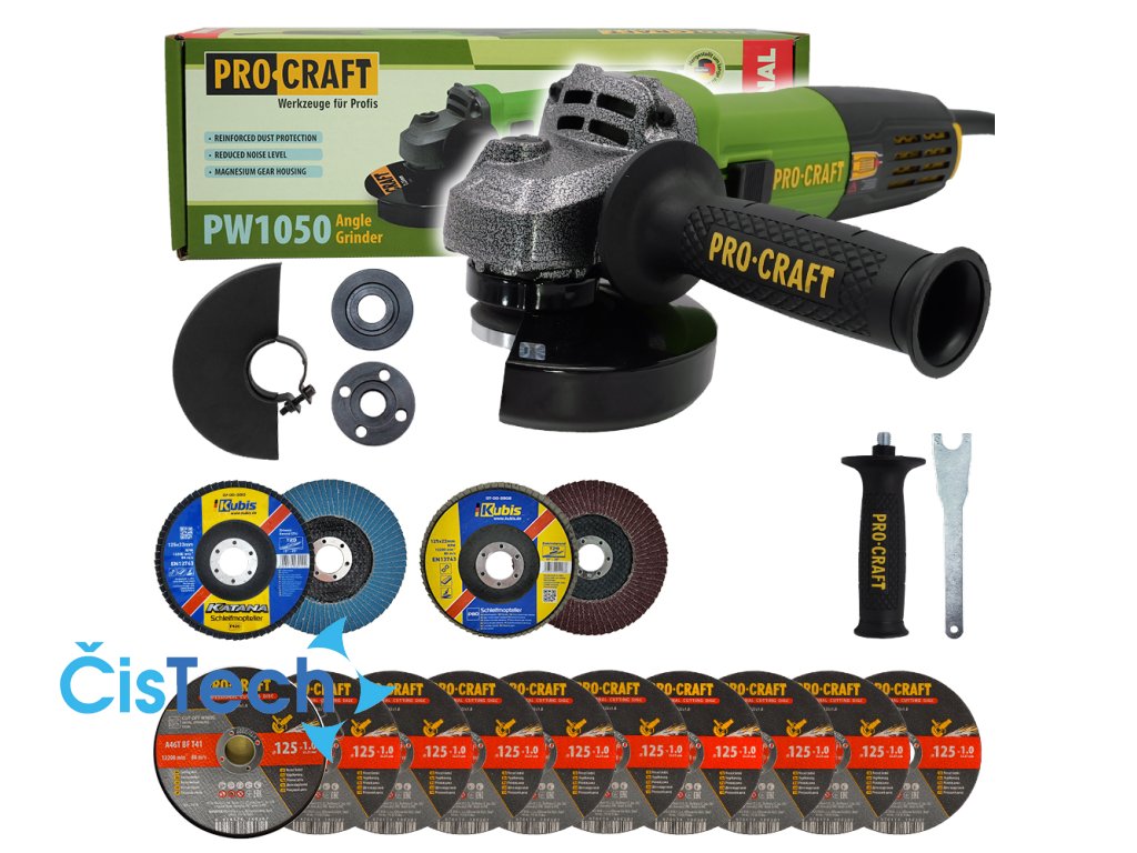 Bruska úhlová Procraft PW1050 + 10x řezný kotouč, 2x lamelový kotouč