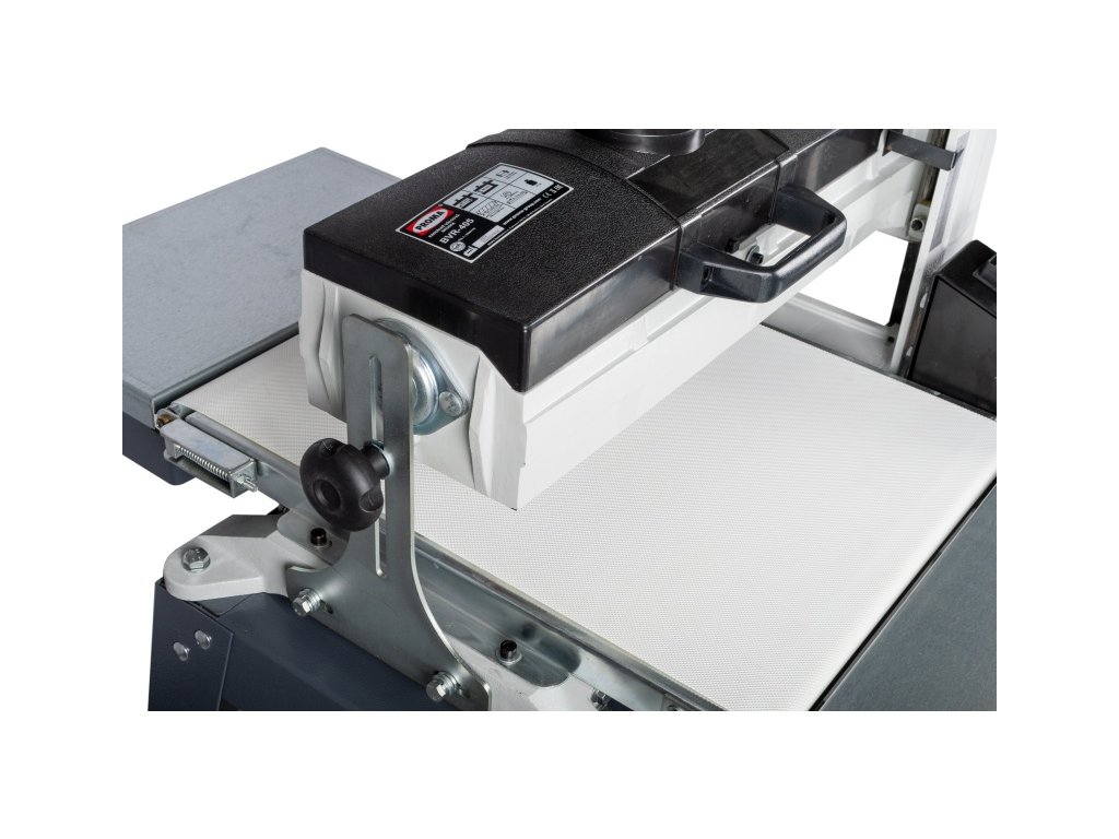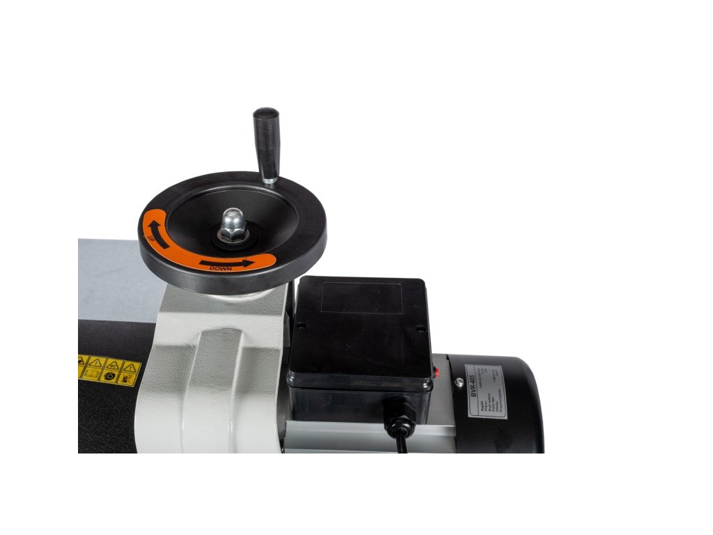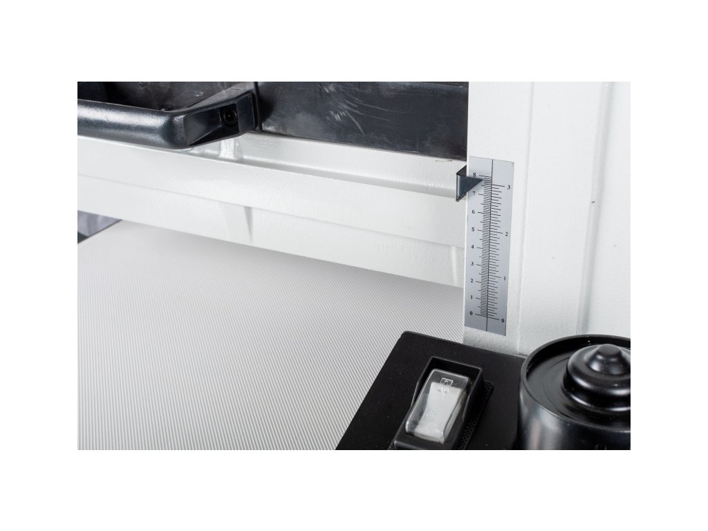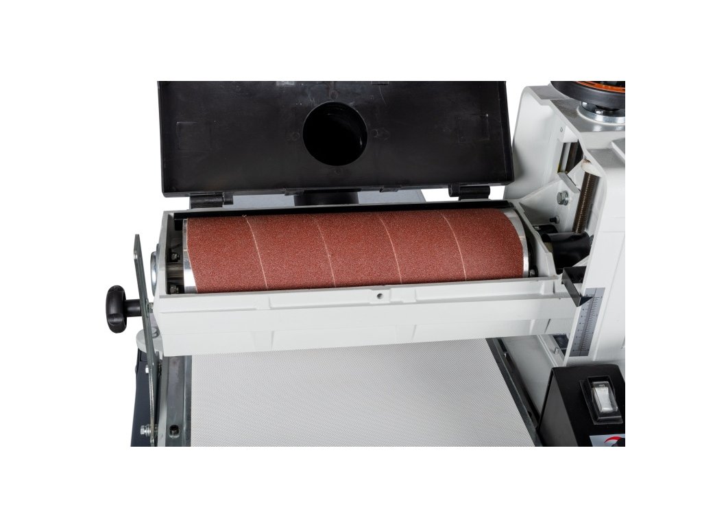 - Precizní nastavení a podpora: Díky boční podpěře zajistíte dokonalou přesnost průchodu obrobku po celé šířce broušení. Nastavení výšky brusného válce lze pohodlně provést pomocí ručního kola a stupnice