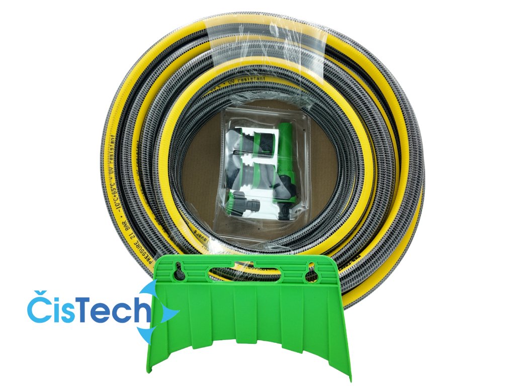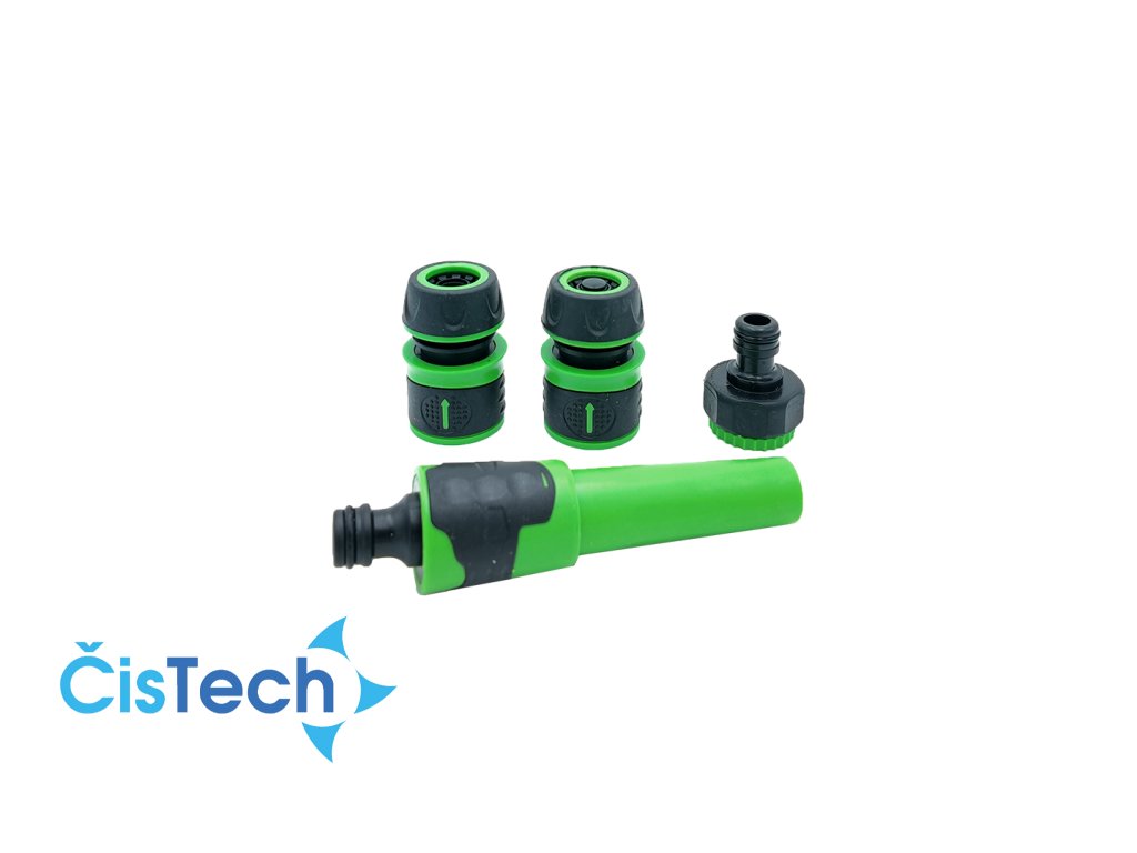 Příslušenství: Sada obsahuje dvě rychlospojky, přípojku, trysku a držak na hadice.