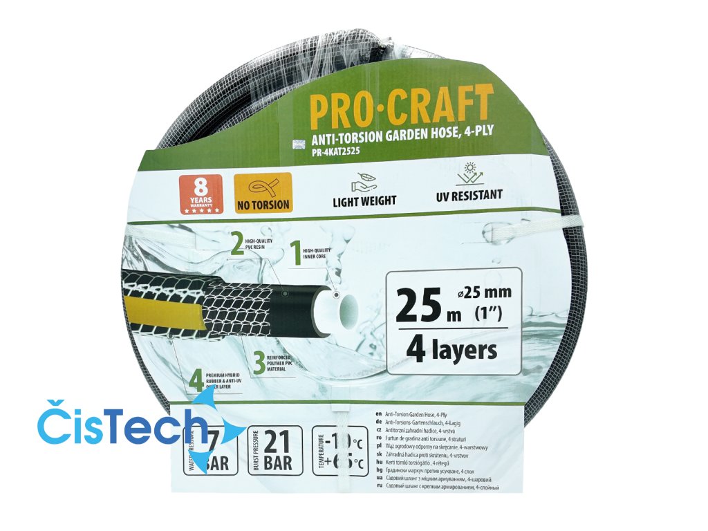 Černo-žlutá zahradní hadicí Procraft PR-4KAT2525 je zkrátka spolehlivým a odolným pomocníkem pro každého zahrádkáře, který ocení dlouhou životnost a bezstarostné používání.