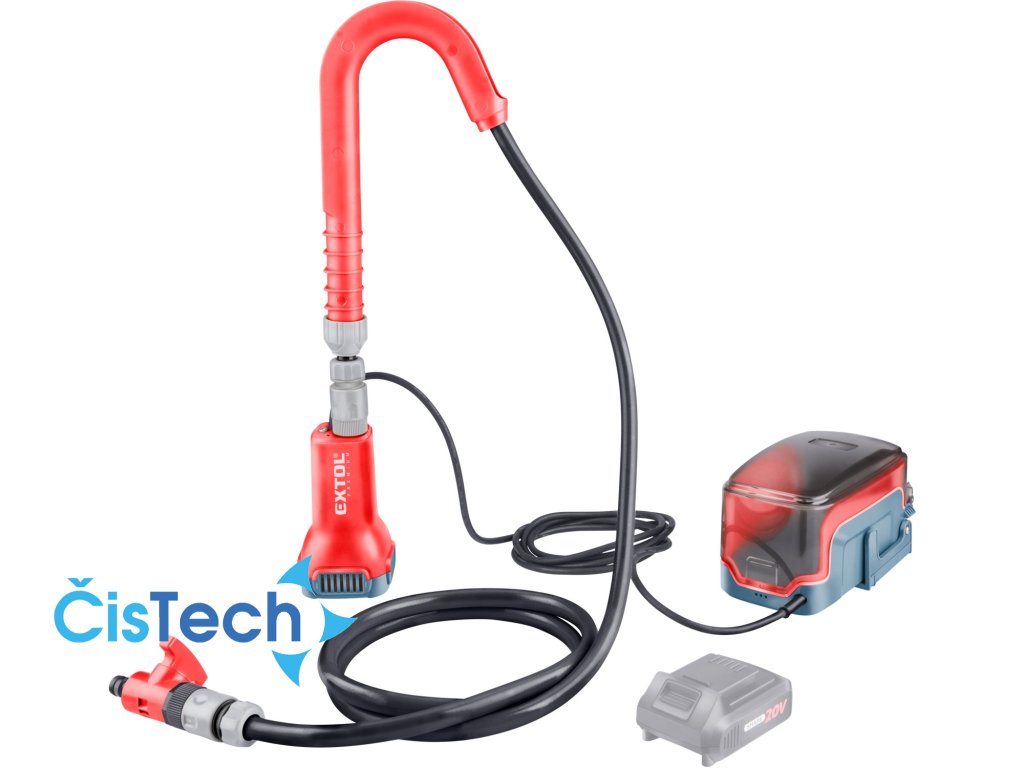 Aku čerpadlo do sudu je určeno pro čerpání čisté vody ze sudů s dešťovou vodou a díky své výtlačné výšce 21m dostane vodu na celou plochu domácí zahrady i v případě, že má vysoké převýšení. Se sudovým čerpadlem odpadá nošení těžkých konví s vodou pro zalévání na zahradní hadici lze totiž připojit různá zavlažovací a kropící/ zalévací příslušenství a s použitím kropítka na tyči lze komfortně zalévat květiny v květináčích ve výšce, rosit květiny mlhou nebo s použitím kropícího příslušenství pro zalévání trávníku lze tak k zalévání trávníku použít dešťovou vodu. Aku verze navíc umožňuje používat čerpadlo v místech kde není přístup k elektrické energii. Čerpadlem projdou pevné nečistoty o maximální velikosti 0,5mm. Na výstupu čerpadla je flexibilní hadice s ventilem, kterým lze upravit průtok vody dle potřeby a běžná rychlospojka na kterou si můžete jednoduše připojit co potřebujete. Pro zjednodušení obsluhy má čerpadlo na výstupu hadici s hákem a lze ho zavěsit do sudu. Čerpadlo je určeno k čerpání čisté užitkové vody bez obsahu jakéhokoli mechanického znečištění. Baterie je uložena ve vodovzdorném krytu s hákem pro zavěšení. Pro běžnou práci dostačují jeden nebo dva 2Ah akumulátory, které můžete rychle nabít v rychlonabíječce, pro náročnější nebo delší práci doporučujeme větší akumulátory s kapacitou 4–8Ah. Akumulátor lze použít ve všech typech nářadí řady EXTOL SHARE20V. Díky použité Li-ion technologii je ho možné kdykoliv dobíjet, aniž by se tím snižovala jeho kapacita. Li-ion akumulátor ztrácí energii vlivem samovybíjení velmi pomalu a vydrží dlouho nabitý a připravený k použití. EXTRA VLASTNOSTI: * čerpání dešťové vody * vysoký výtlak – 21m * ventil s rychlospojkou na výstupu * hák pro zavěšení čerpadla v sudu * závěsné pouzdro s bateriíDoplňkové parametry