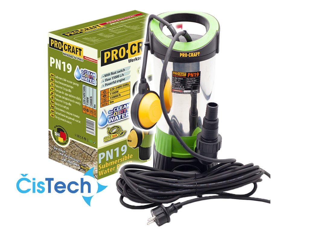 Vodní kalové polnorné čerpadlo Procraft PN19 je určeno k odčerpání čisté i znečištěné vody s příměsí drobných částí z nádrže, rybníku, jezírka. Silný motor s příkonem 1100 W zaručí výkonnost 15000 litrů za hodinu čisté a znečištěné vody do výšky až 11 m. Ponoření je možné až do 8 metrů. Čerpadlo má odolný nerezový obal, který zvyšuje jeho odolnost a lépe chladí motor a zvládne odsát měkké nečistoty až do 35mm. Plovákový spínač automaticky zapíná a vypíná čerpadlo v závyslosti poklesu hladiny. Čerpadlo je vybavené tepelnou pojistkou přetížení, které vypne při 36°C. Součástí čerpadla je 10m dlouhý přívodní kabel s vidlicí. Balení karton.