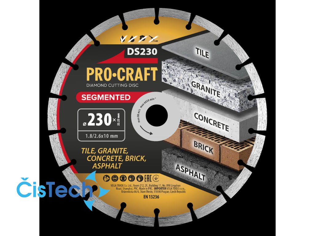 Diamantový řezný kotouč Procraft DS230 je univerzální nástroj určený pro tvrdé i středně tvrdé materiály, který nabízí vysoký výkon, plynulé řezání a dlouhou životnost. Díky lisovaným segmentům a jejich pevnému spojení s tělem kotouče je ideální pro středně náročné řezné práce.