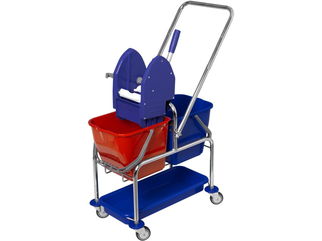 V ceně vozíku: konstrukce s vodítkem, 2xkbelík 17 l, ždímač, vanička 3x6 l