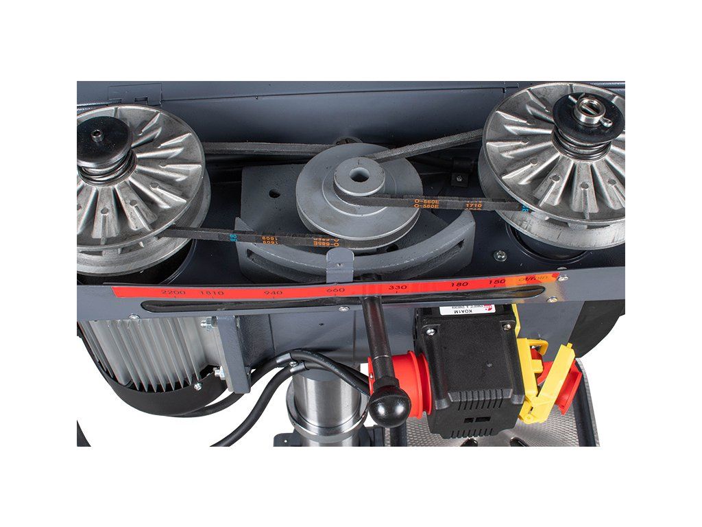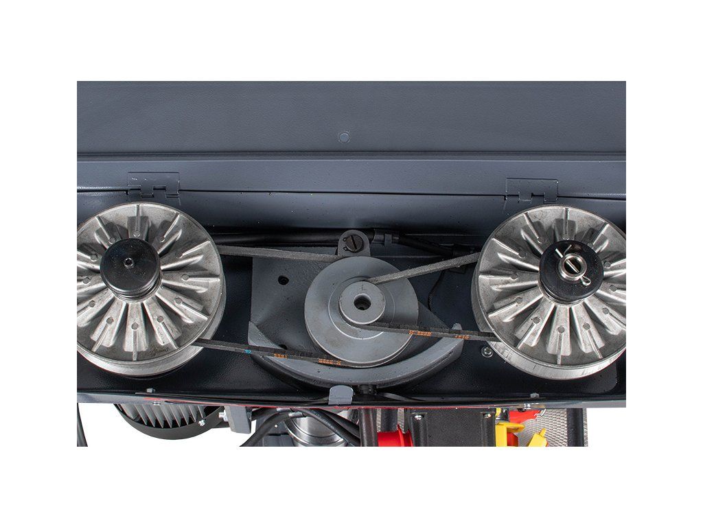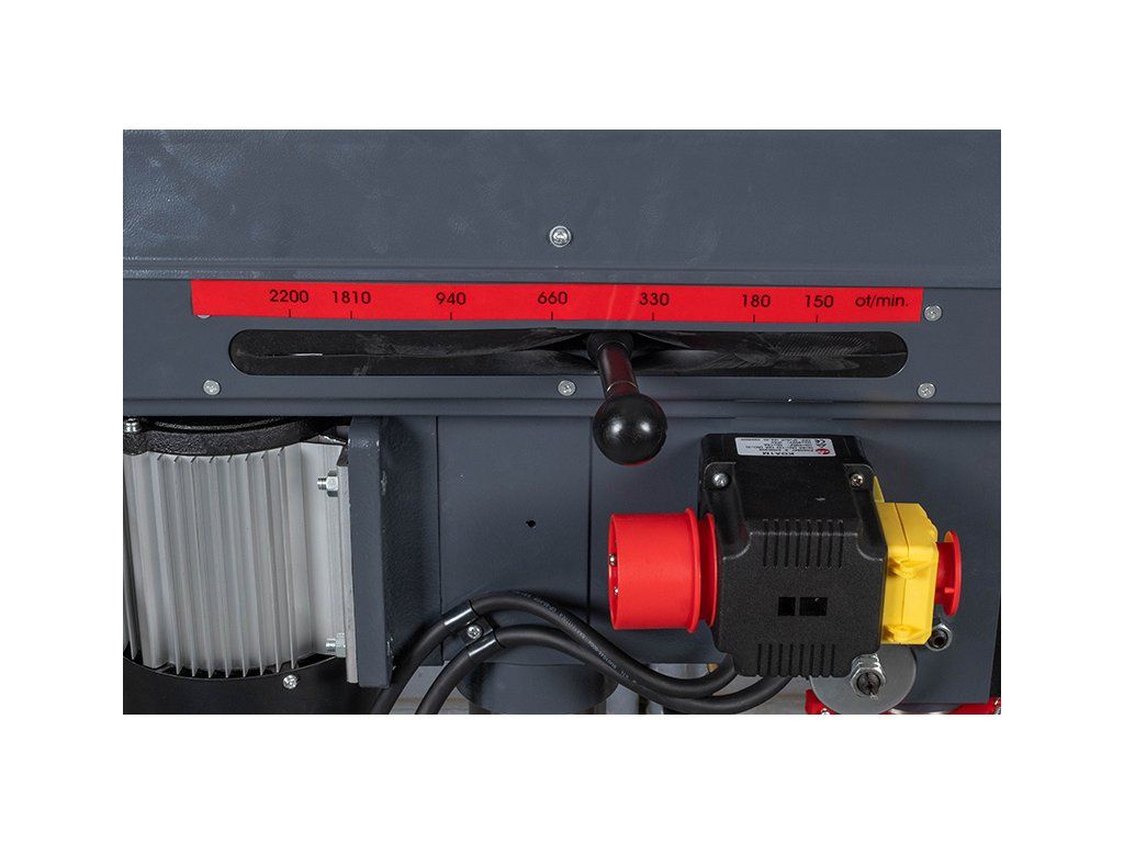 - Pomocí klínových řemenů lze zvolit až 12 rychlostí otáčení vřetene