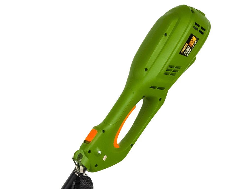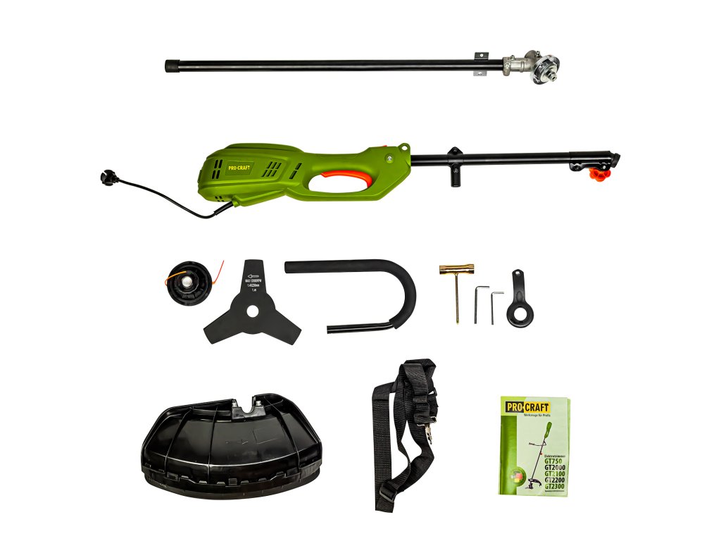 Elektrický křovinořez Procraft GT2000 je spolehlivé a praktické nářadí určené pro údržbu menších až středně velkých travnatých ploch. Silný elektromotor o výkonu 1200 W a otáčkách 7000 ot./min zajišťuje plynulý a rovnoměrný chod při práci s trávou a slabším plevelem. Stroj je vybaven poloautomatickou strunovou hlavou, díky které se struna uvolňuje snadno pouhým poklepem o zem. V případě potřeby lze využít i přiložený kovový třízubý nůž, který zvládne i hustší porost.