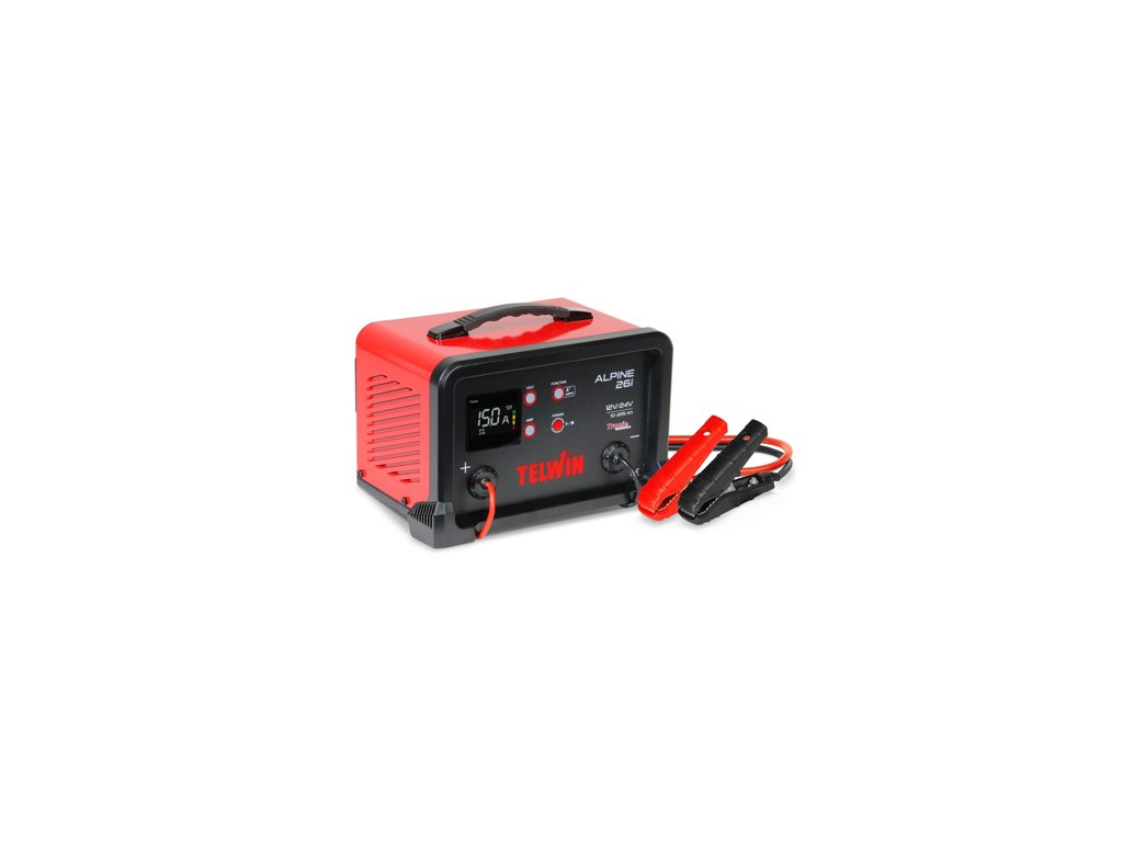 Elektronická nabíječka autobaterií Alpine 26 i Telwin. Elektronická nabíječka s udržovací funkcí baterií 12V/24V s LCD displejem pro elektrolytické, gelové, AGM, MF, PbCa, EFB a Li baterie.