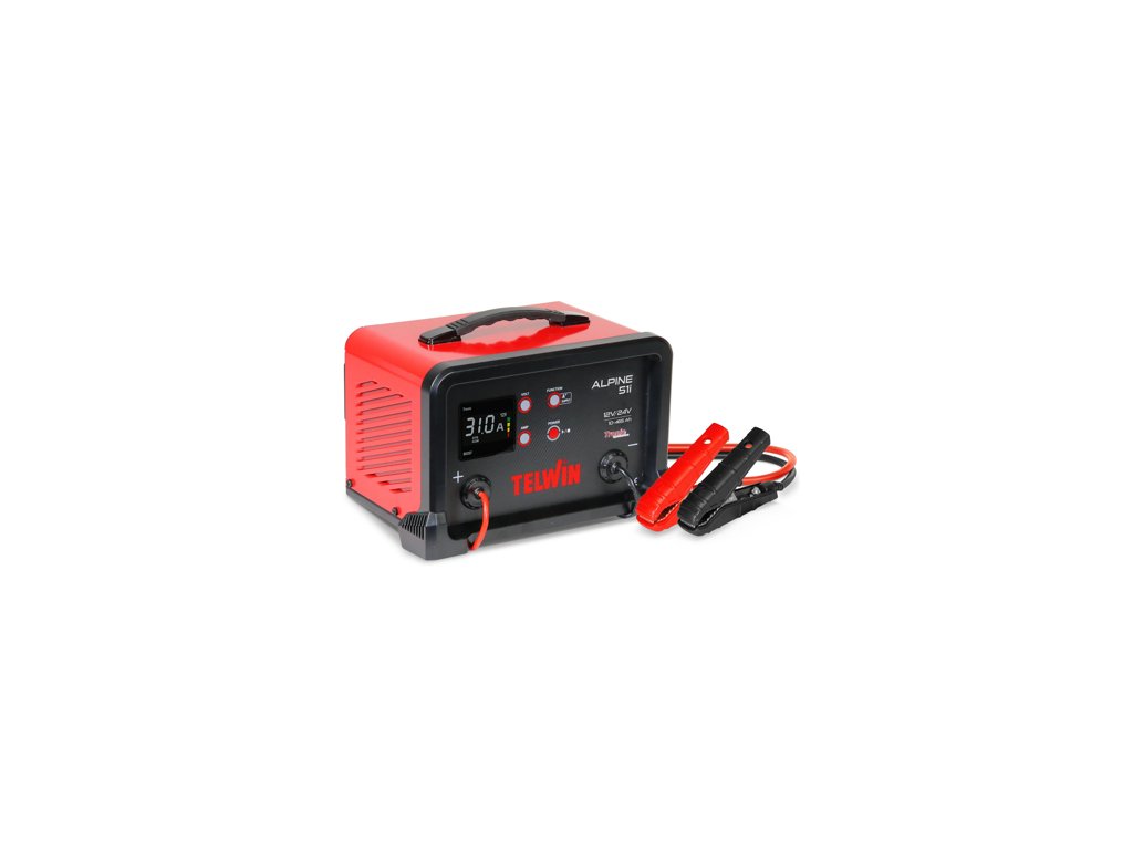 Elektronická nabíječka autobaterií Alpine 51 i Telwin. Elektronická nabíječka s udržovací funkcí baterií 12V/24V s LCD displejem pro elektrolytické, gelové, AGM, MF, PbCa, EFB a Li baterie.