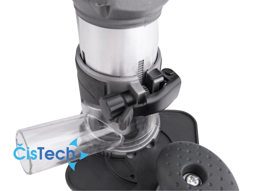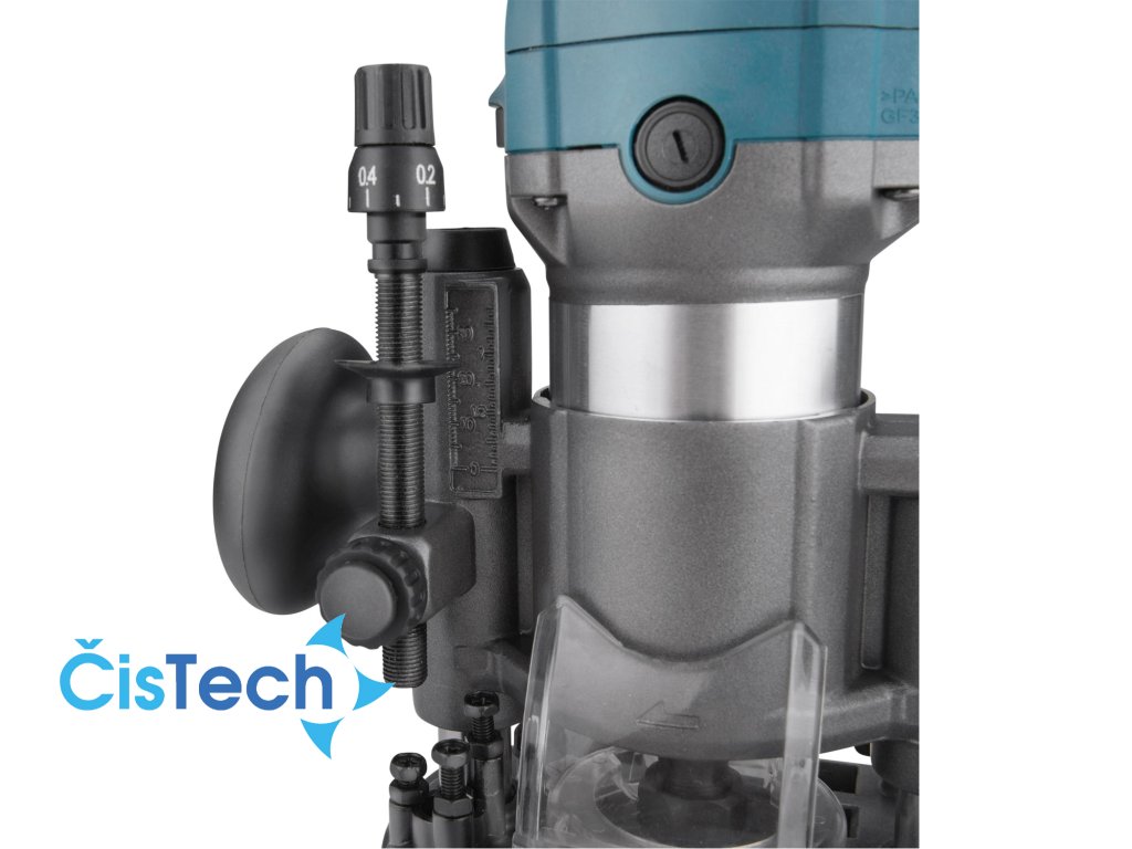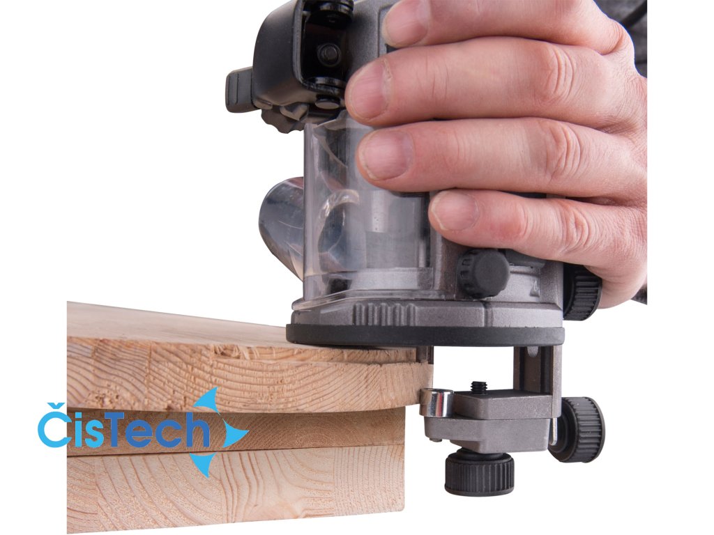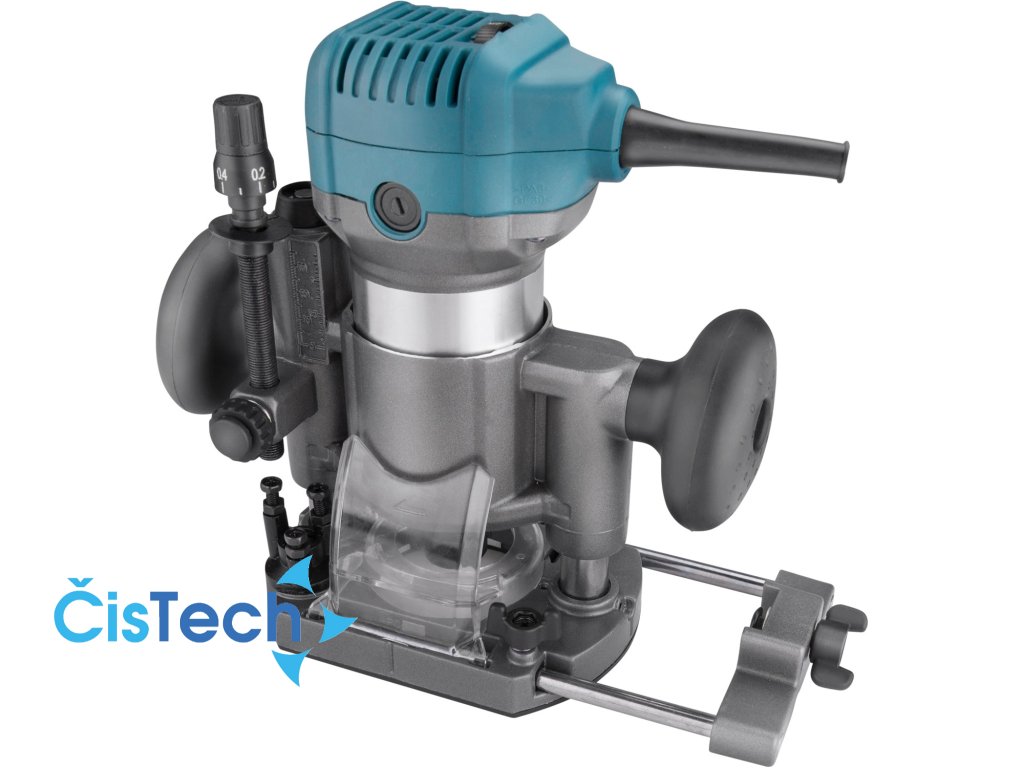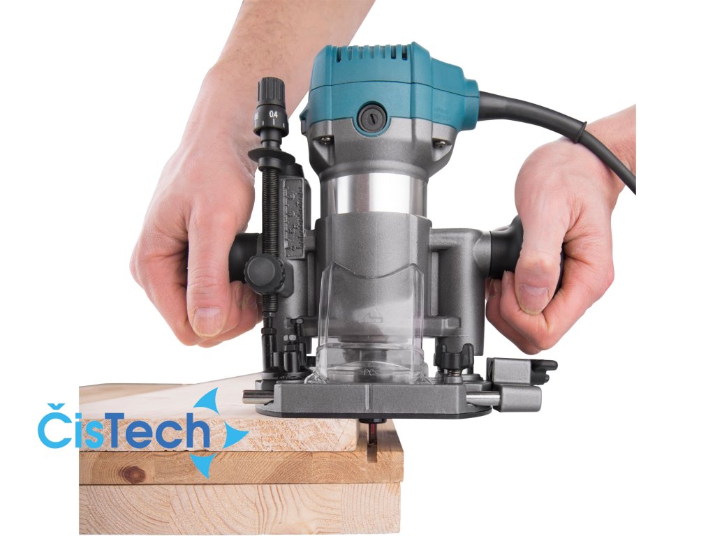 Frézka je určena k frézování hran, profilů, otvorů do dřeva s různými tvary v závislosti na tvaru použité frézy. Frézka může pracovat s frézami se stopkou 6 a 8mm. Srdcem frézky je silný 710W motor s regulací otáček v rozsahu 13000-33000/min, který umožňuje přizpůsobit rychlost typu materiálu. Dále je vybavena elektronickou kontrolou otáček, která jí umožňuje mít konstantní otáčky i při zatížení a funkcí "soft start" zajišťující hladký start bez nárazů. Pro přesnou práci je zanořovací základna vybavena hloubkovou zarážkou s možností přesného posunu v řádu desetin milimetru. Při práci s tvrdým dřevem můžete využít revolverovou zarážku pomocí, které si rozdělíte frézovanou hloubku do několika vrstev a postupně je budete odebírat. Balení obsahuje tři různé základny: zanořovací, jednoruční a základnu s rukojetí. Dále lze dokoupit předsazenou základnu vhodnou pro práce u stěn. Frézka lze snadno vyjmout ze základny a vložit do jiné základny v závislosti na prováděné práci. Tato modularita výrazně usnadňuje a zrychluje práci. EXTRA VLASTNOSTI: * regulace otáček umožňuje přizpůsobit otáčky vzhledem ke stavu obráběného materiálu, což vede k lepšímu vzhledu a opracování * nastavitelná hloubka frézování s možností přesného posunu po desetinách milimetru * revolverové zarážky pro postupné zanořování frézy při opracovávání tvrdého dřeva * masivní hliníková základna * frézku lze snadno vyjmout ze základny a vložit do jiné podle prováděné práce * možnost připojení odsávacího zařízení snižuje prašnost při práci * snadná výměna upínacích kleštin umožňuje použít frézy s průměrem stopky 6 nebo 8mmDoplňkové parametry