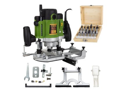 Součástí balení: podélný doraz s vodícími tyčemi, upínací kleštiny, uhlíkové kartáče a adaptér na odsávání, frézy. Regulace otáček, nastavitelné hloubkové dorazy Příkon (W)...