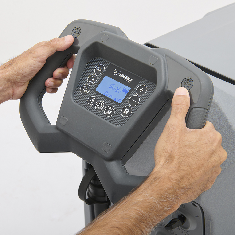 Ghibli & Wirbel REXA 50 D 55 BC LITHIUM CHEM profesionální podlahový mycí stroj s odsáváním s lithiovou baterií, pojezdem a dávkováním chemie