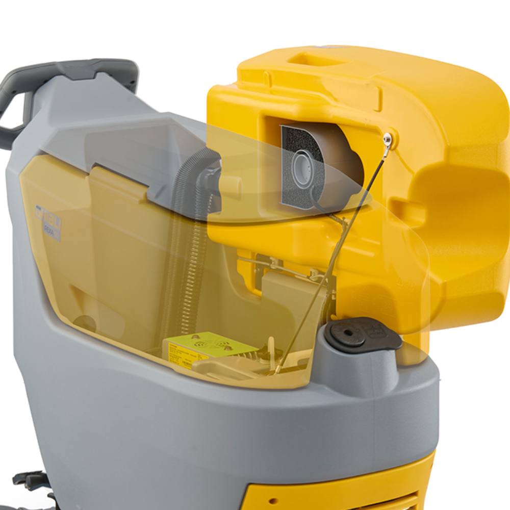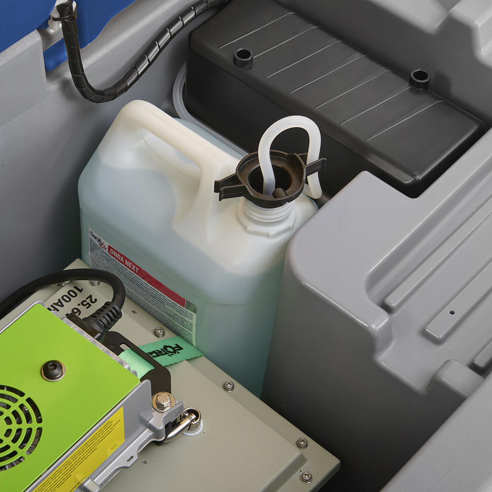 REXA 50 D 55 BC LITHIUM CHEM je navržena s důrazem na jednoduchou každodenní údržbu. Nádrž na odpadní vodu má široký otvor pro snadnější kontrolu a čištění. Samostatná miska na nečistoty je snadno vyjímatelná, což urychluje běžné servisní úkony po skončení práce.
