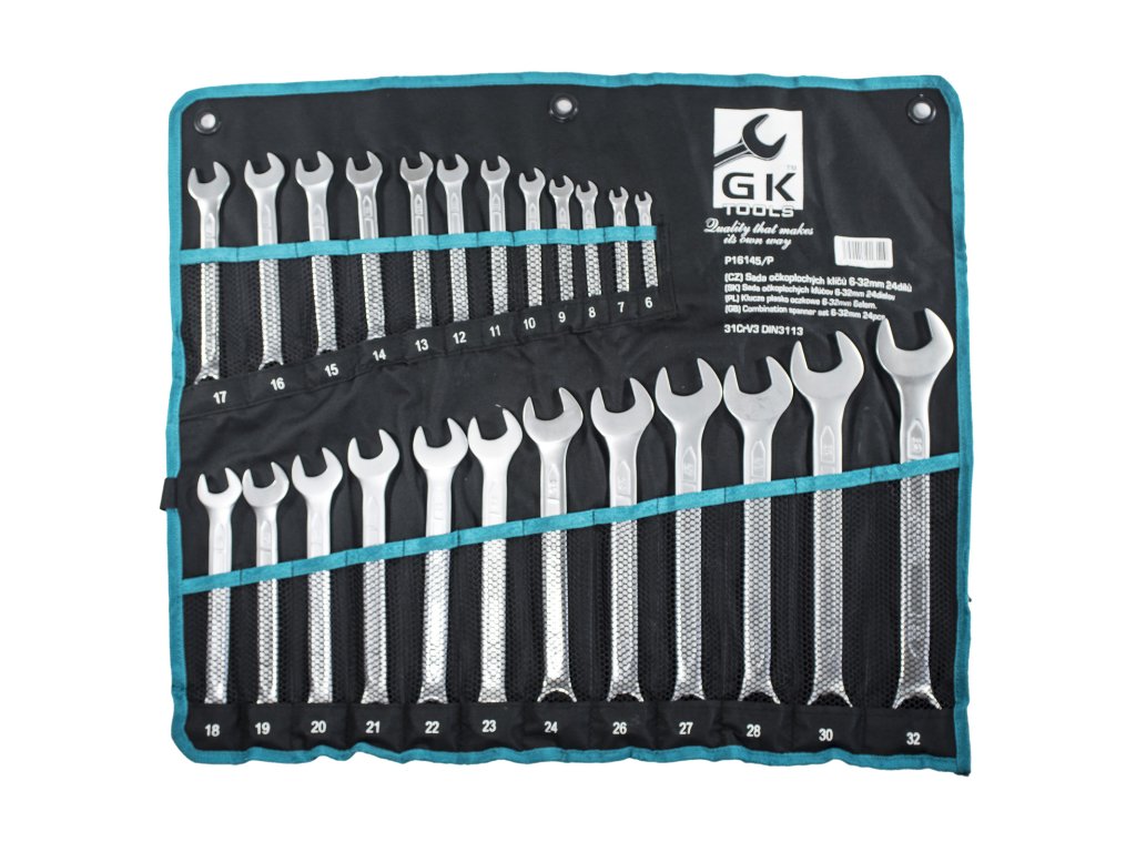 GK TOOLS Sada očkoplochých klíčů, matné 24 dílů | 6-32 mm, textilní obal