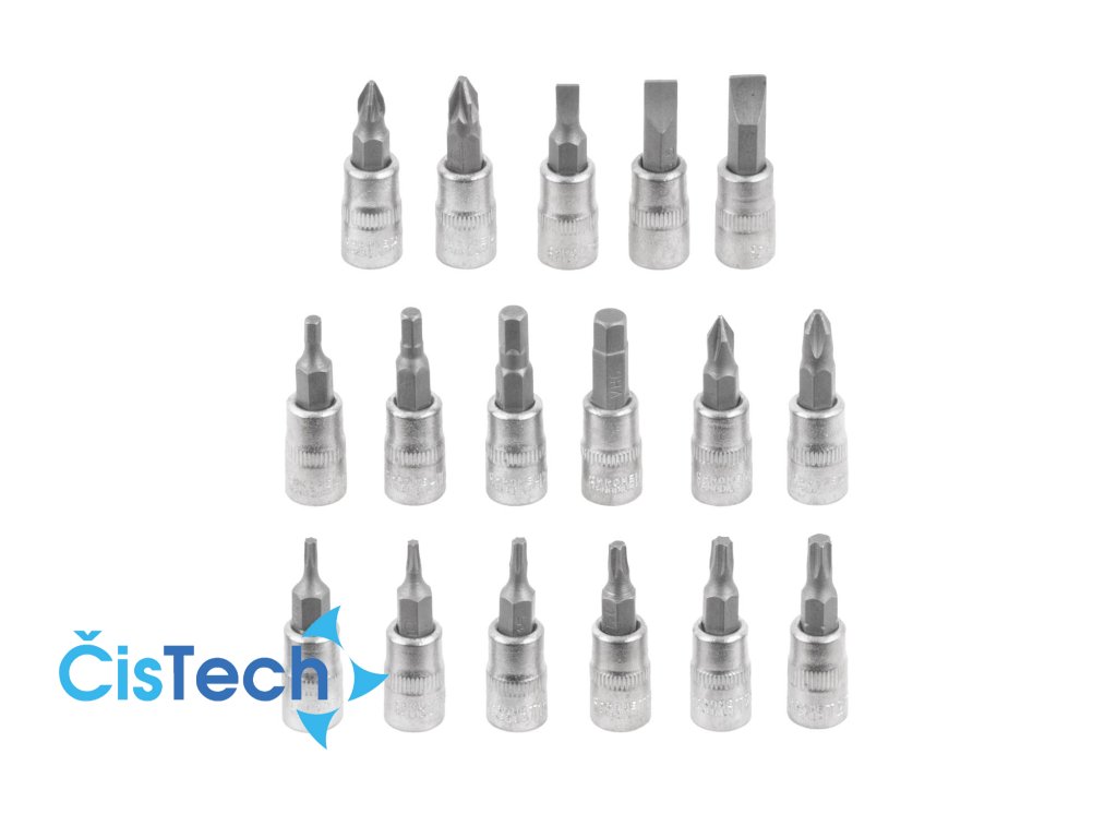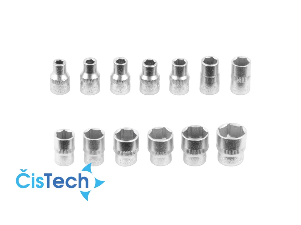 Komplexní výbava – 82 dílů: Obsahuje širokou škálu nástavců, klíčů, ráčen a příslušenství pro univerzální využití.