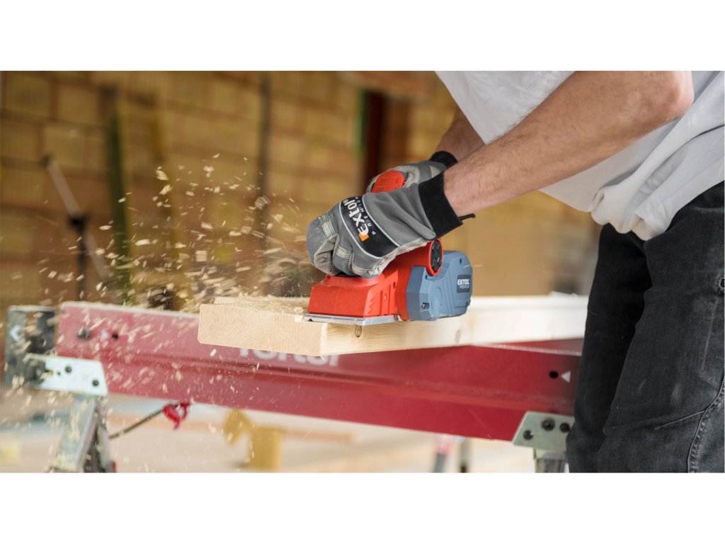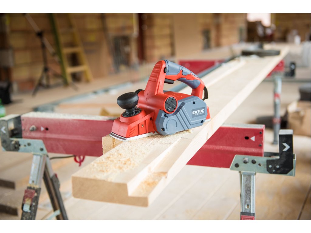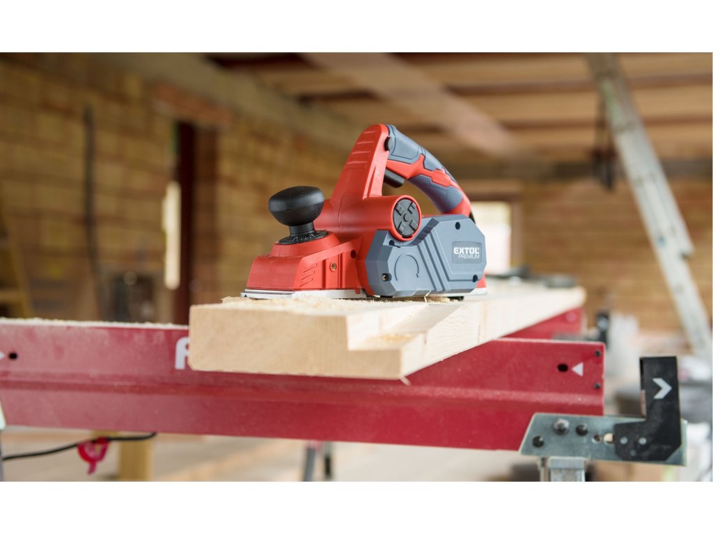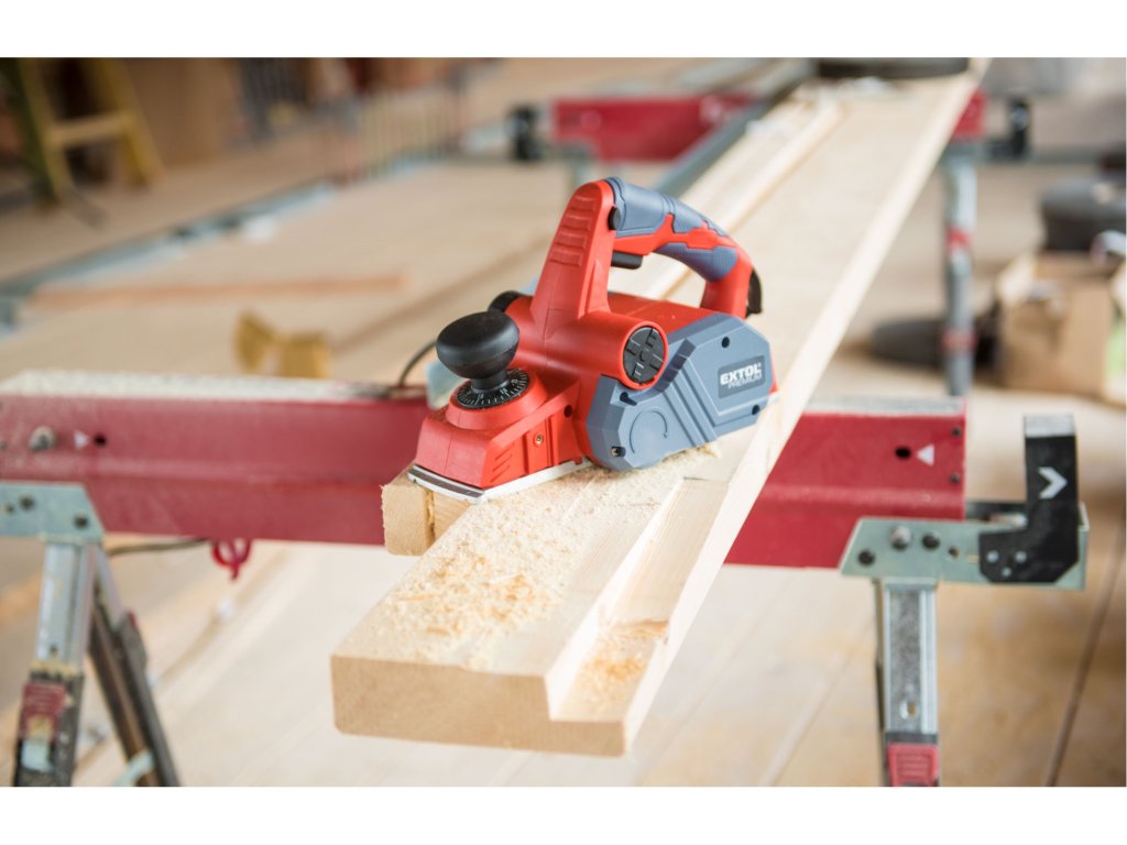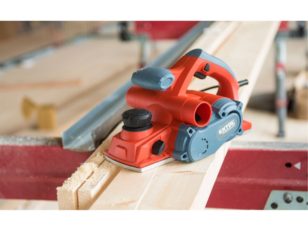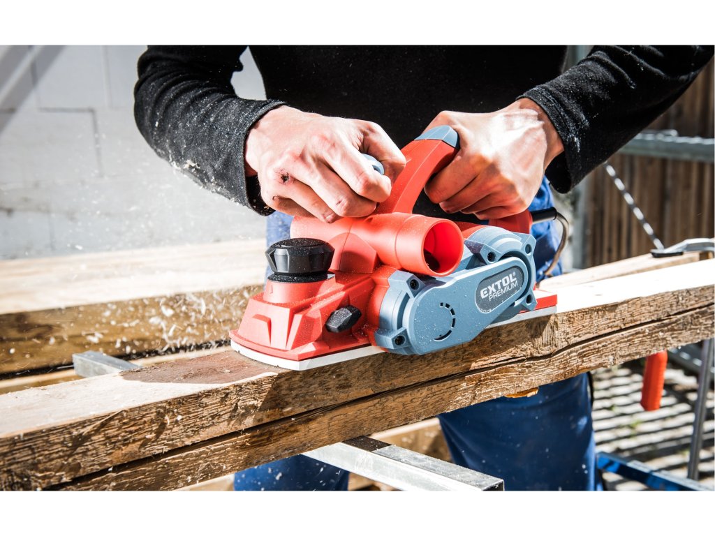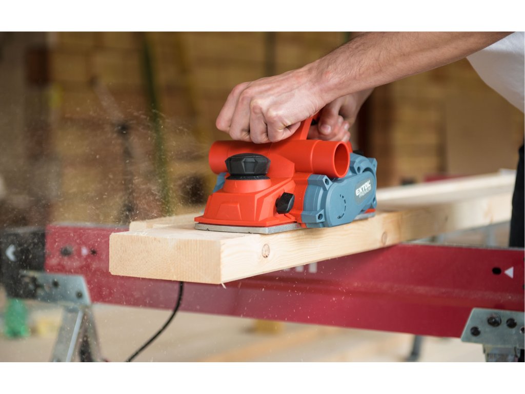Velmi silný hoblík s hoblovací šířkou 110mm je určen k hoblování, srážení a drážkování dřeva, např. trámů a prken. Můžete s ním hoblovat 0-3mm při jednom protahu a hloubka úběru se nastavuje po 0,25mm. Při hoblování polodrážek můžete využít rozsah 0 až 8mm. Na hoblovací desce jsou dvě různě hluboké drážky sloužící k jednoduchému srážení hran a sklopný ochranný trn, který chrání při přerušení práce, nože a plochu pod hoblíkem proti poškození. Pokud preferujete práci bez tohoto ochranného trnu, můžete ho jednoduše zajistit v desce, aby se nevyklápěl. Pro udržování čistého pracovního prostoru lze k hoblíku připojit odsávání z pravé nebo levé strany. EXTRA VLASTNOSTI: * hoblovací šířka 110mm * dvě různě hluboké drážky pro srážení hran * sklopný ochranný trn v hoblovací desce hoblíku * odsávání lze připojit z obou stranDoplňkové parametry