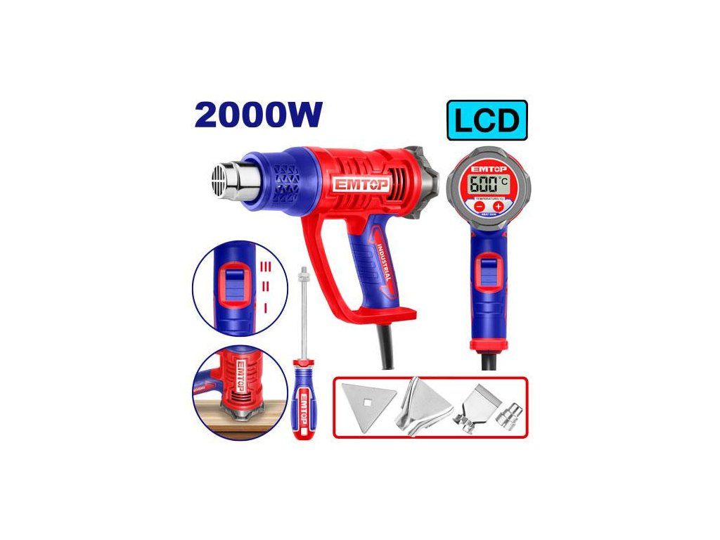 Horkovzdušná pistole 2000W 50-600°C LCD Dárky + doprava zdarma při nákupu na e-shopu