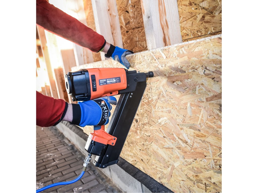 Hřebíkovačka na konstrukce je určena pro těžší práce při výstavbě různých konstrukcí, připevňování panelů (DTD, OSB apod.), podbíjení, upevňování lišt, výrobě krabic apod... EXTRA VLASTNOSTI: * lehké magnéziové tělo a ergonomicky tvarovaná pogumovaná rukojeť snižují únavu při práci * nastavitelný výfuk vzduchu * hřebíkovačka má dva režimy spouštění: sekvenční nastřelování pomocí stisku spouště a kontaktní nastřelování při dotyku s pracovní plochouDoplňkové parametry