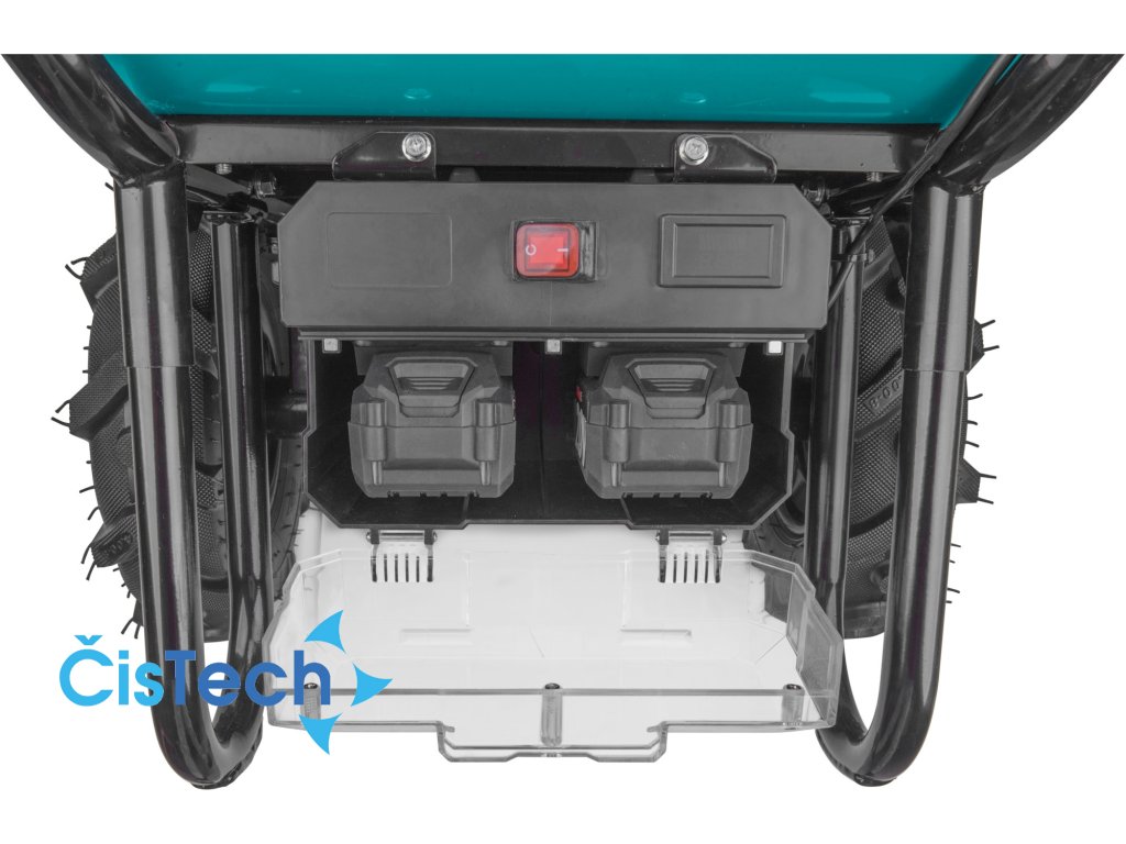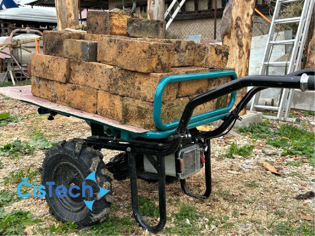 Přepravní aku kolečko dvoukolák s pomocným elektrickým pohonem je určeno pro přepravu tuhých, sypkých nebo hustých materiálů. Díky elektrickému pohonu výrazně urychluje přeprava materiálu a zároveň snižuje únava obsluhy, což významně zvyšuje produktivitu práce. Použití Li-ion baterie výrazně snižuje hmotnost kolečka oproti kolečkům, které jsou poháněny olověnými bateriemi. Kolečko má na pravé rukojeti ovladač kde si pomocí palce nastavíte okamžitou rychlost jak do předu, tak dozadu. Na ovladači lze přepnout jízdu dopředu nebo dozadu, brzdu, normální rychlost nebo Turbo. Pro běžný provoz se používá normální rychlost, Turbo lze použít při jízdě do kopce, v obtížném terénu nebo při přepravě těžšího nákladu. Kolečka jsou poháněná nejmodernějším „brushless" motorem. Tento nový typ motoru má vyšší životnost, je výkonnější a má menší spotřebu el. energie než klasické motory s uhlíkovými kartáči. Pokud je to nutné, lze krátkodobě používat kolečko bez baterie jen na ruční pohon. Zabudovaná převodovka s diferenciálem výrazně zlepšuje prostupnost terénem a výkon motoru při jízdě do kopce. Diferenciál umožňuje otočení koleček na místě. Díky umístnění těžiště nákladu nad osou kol je většina hmotnosti nákladu umístěna na kolech a obsluha skoro nic nenese. Elektrická brzda se používá pokud potřebujete zamezit pohybu kolečka na místě. Pneumatiky mají hluboký vzorek do terénu s dobrou trakcí. Kolečko je dodáváno s kovovou korbou o objemu 100l, bezešvě lisovanou z jednoho kusu plechu. Pro přepravu pevného objemnějšího nákladu (např. krabice, polena …) lze dokoupit rámovou konstrukci, která se přišroubuje na místo korby. Kolečko má krytí IP64, což mu umožňuje dočasnou práci ve vlhkém prostředí, případně umývání vapkou, ale není určeno k trvalému provozu nebo skladování ve vlhkém prostředí. Před přepravou v autě můžete sklopit ručky, takže se kolečka vejdou i do menšího auta. Zdrojem elektrické energie jsou silné SHARE20V akumulátory, které se prodávají samostatně. Z důvodu vysokého odběru je nutné použít 6-8Ah verzi. Výhodou použití SHARE20V baterií je, že když nepoužíváte kolečko, můžete je také používat v našem neustále rozšiřujícím se sortimentu nářadí používajícího SHARE20V baterie. Vyjímatelné baterie umožňují jejich snadné nabíjení a skladování v suchém a zatepleném prostředí, což je velmi důležité pro jejich životnost. Baterie mají ochranu proti vybití pod minimální úroveň, před přetížením při nadměrném odběru proudu, přebitím, zkratem a náhlému zvýšení teploty při práci. Díky použité Li-ion technologii je ho možné kdykoliv dobíjet, aniž by se tím snižovala jeho kapacita. Li-ion akumulátor ztrácí energii vlivem samovybíjení velmi pomalu a vydrží dlouho nabitý a připravený k použití. EXTRA VLASTNOSTI: * silný 500W motor s převodovkou a diferenciálem * normální nebo Turbo rychlost * pohon dopředu, dozadu nebo elektrická brzda * terénní pneumatiky * sklopné ručky * pro dvě SHARE20V baterie 6-8Ah * nízká hmotnost díky Li-ion bateriiDoplňkové parametry