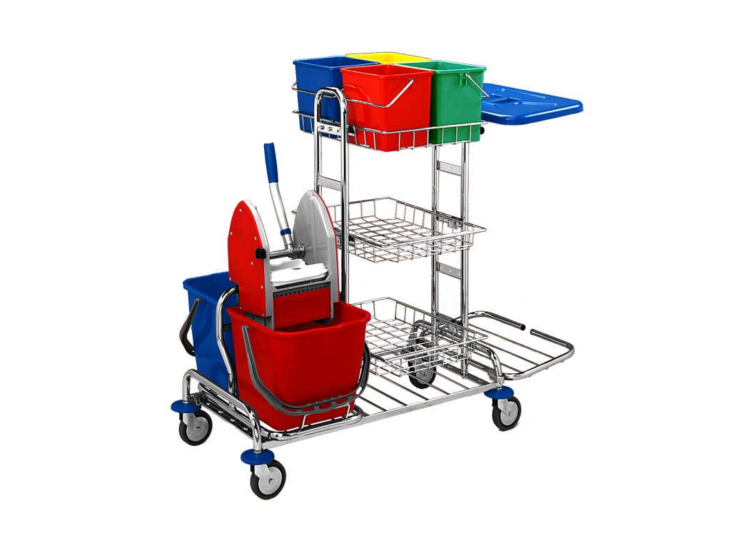 Velký podvozek Kombi Maxi s koši BB, které mají rozměr 37,5x52 výška 6 cm. Vhodné pro odkládání a rozvoz např. ručníků, nádobí apod. Na podvozku je umístěna mycí sada s kbelíky 17 l a ždímačem. Podvozek je osazen kolečky pr. 100 mm.