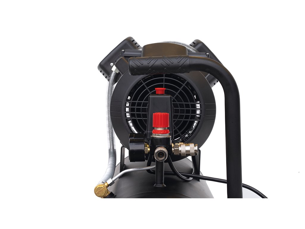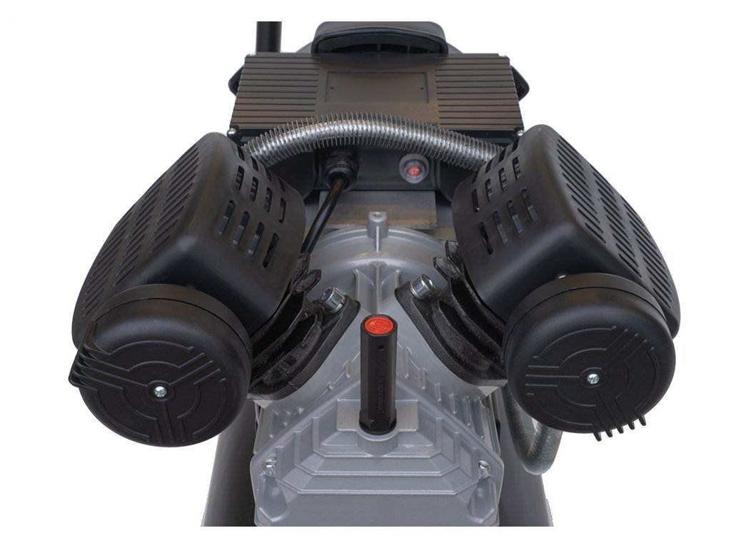 Silný mobilní pístový kompresor Black Wind BV s přímým spojením elektromotoru s dvouválcovou kompresorovou jednotkou v olejem mazaném provedení. Stroj s příkonem 2,2 kW a se sacím výkonem 356 l/min je ve standardní verzi dodáván s následujícím vybavením: