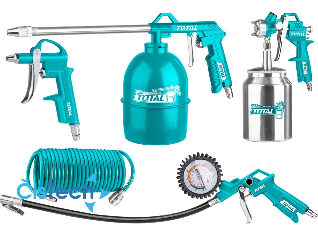 doplňující parametr: | Délka vzduchové spirálové hadice 5m, průměr 8mm, pistole ofukovací, pistole stříkací se spodní nádobkou, plnič pneumatik s manometrem, pistole mycí |