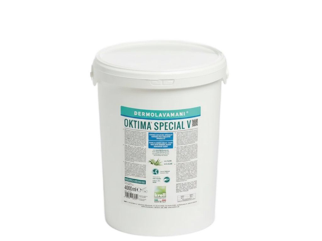 Kroll Oktima Special V 4 l je profesionální krémová pasta na ruce pro odstranění barev, tmelů, silikonů, emailů, olejů a mastnoty. Je vhodná pro pracovní prostředí, kde běžné mýdlo nestačí a kde je potřeba důkladné, opakované a praktické čištění rukou. Nabízí kombinaci abrazivní účinnosti, rostlinně založených mycích složek, dermatologicky testované snášenlivosti a provozního balení 4 l.