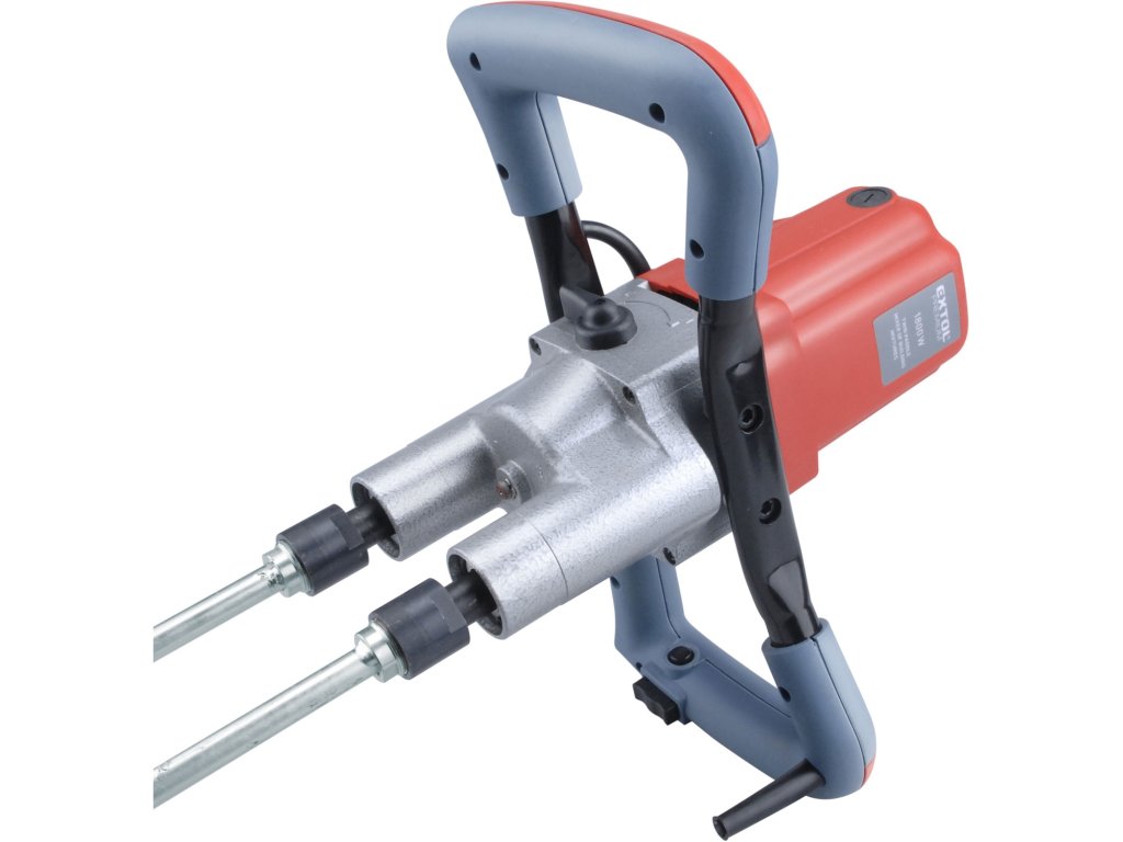 Dvoumetlové míchadlo je určeno k rozmíchání a přípravě stavebních hmot jako např. malty, omítky, spárovací hmoty, dále např. barev a laků, která neobsahují organická rozpouštědla (např. aceton). Dvoumetlové míchadlo vylepšuje a zrychluje práci oproti jednoduchému, protože nepoužívá vyšší otáčky, při kterých může poklesnout kvalita míchání, ale díky použití dvou metel efektivněji a rychleji míchá směsi. Metly s opačným směrem otáčení vůči sobě také zamezují otáčení nádoby s míchanou směsí a ulehčují práci. EXTRA VLASTNOSTI: * díky dvoumetlovému systému lze míchat větší objemy směsi (< 90 litrů) * funkce pozvolného náběhu otáček („soft start“) a protiběžné otáčení metel zamezují vystříknutí míchané směsi z nádoby * kontrolní elektronika motoru udržuje konstantní otáčky i během zatížení * regulátorem otáček lze plynule měnit otáčky vzhledem k povaze míchaného materiálu * funkce „auto-stop carbon brush“ automaticky vypne chod míchadla v případě opotřebení uhlíků * pevné držadlo s kovovou konstrukcíDoplňkové parametry