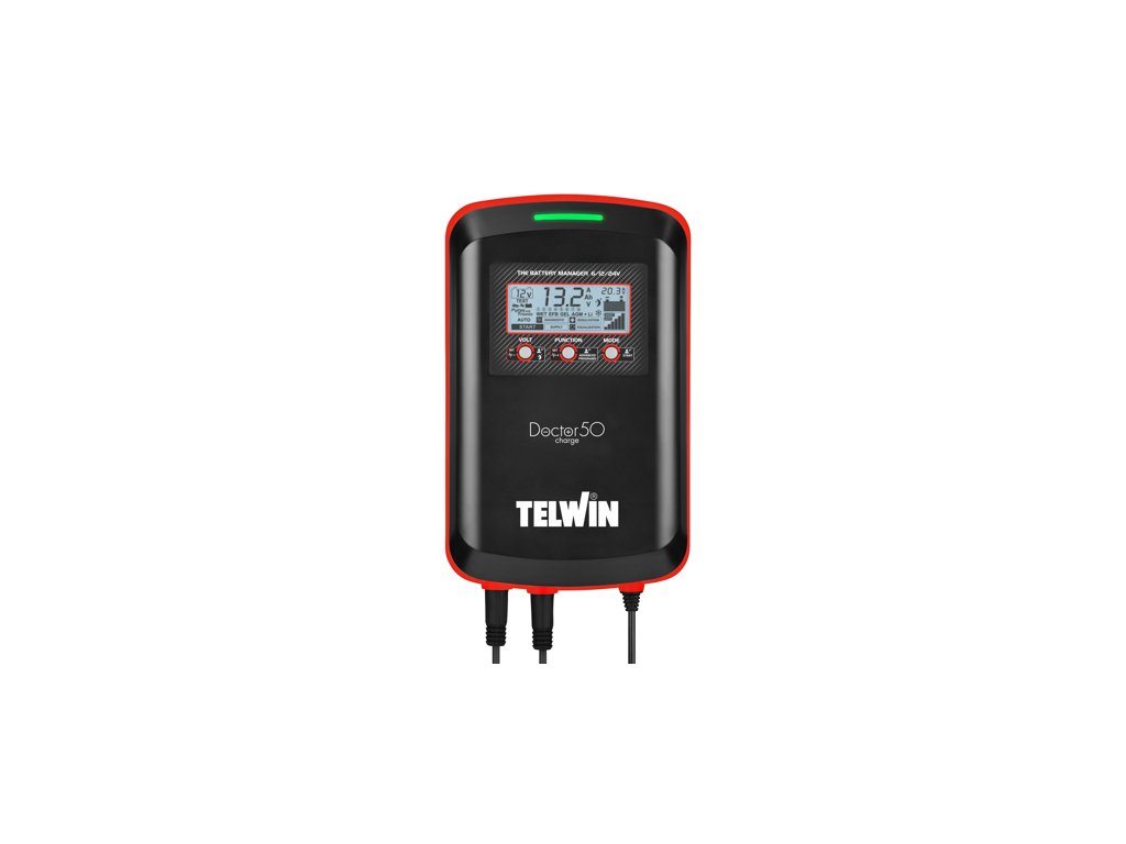 Microprocesorová pulsní nabíječka Doctor Charge 50 Telwin, 6-12-24 V s funkcí desulfatizace autobaterie, diagnostikuje baterie, nabíjí automaticky všechny druhy autobaterií.