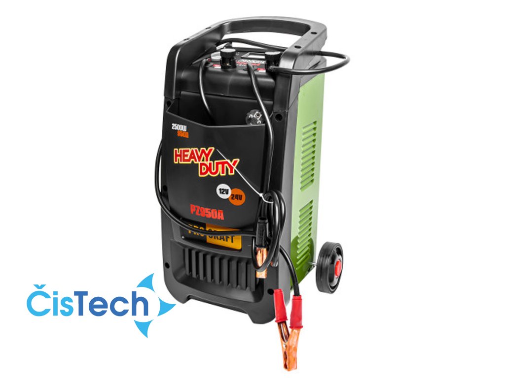 Procraft PZ950A je výkonná nabíječka autobaterií kombinovaná se startovacím zdrojem, která je ideální pro osobní i nákladní automobily, motocykly, dodávky a další vozidla. Díky vysokému nabíjecímu proudu až 85 A a startovacímu proudu 950 A zvládne spolehlivě dobíjet a nastartovat i velké motory.